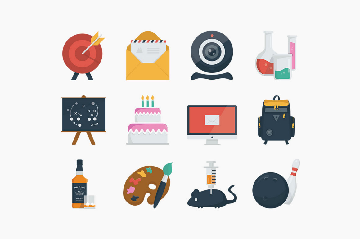 Awesome set of 170 flat icons. They are definitely perfect to add value to all your new projects and make them stand out! Created with love, this set is well organized into 10 different categories: Health / Chemistry, Design, Devices, Food & Drinks, Shopping / Money, Landscapes, Others, Weather, Users, Sports. Icons are 100% vector and available in different formats: ai, eps, psd, svg and png.