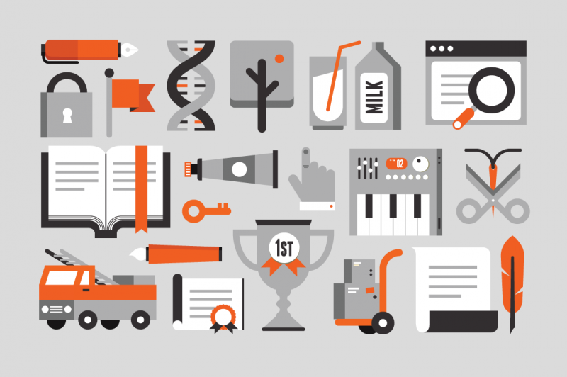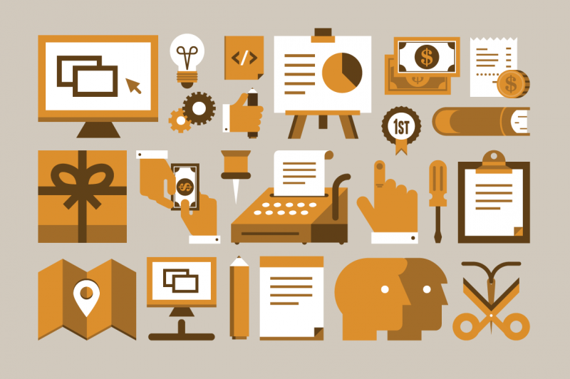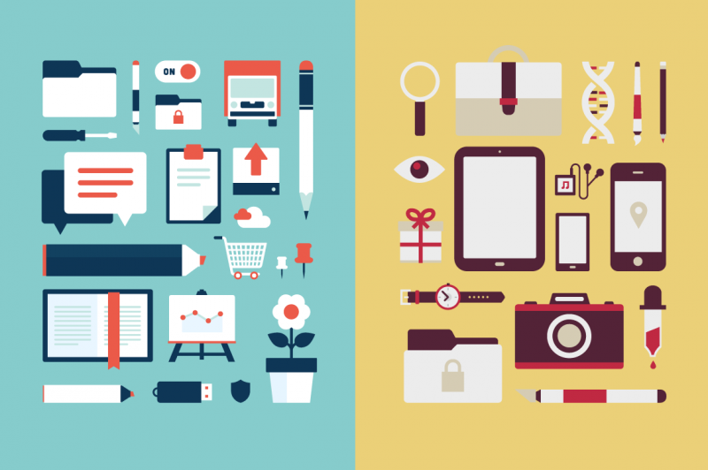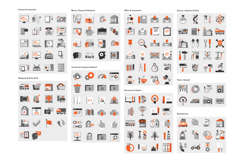 Every web & graphic designer needs a library full of icons, illustrations and glyphs. They are very suitable both for web or application as well as for print design because all elements are resizable and appropriate for any resolution. They are available in flat style design with a slight touch of retro and therefore provide you refreshment in your new design by making it very original.