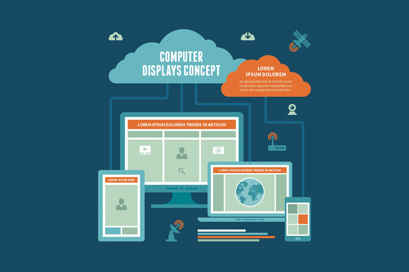 Computer & mobile displays in flat design style for different works. 100% vector! Zip file contain: EPS CS, AI CS, JPG.