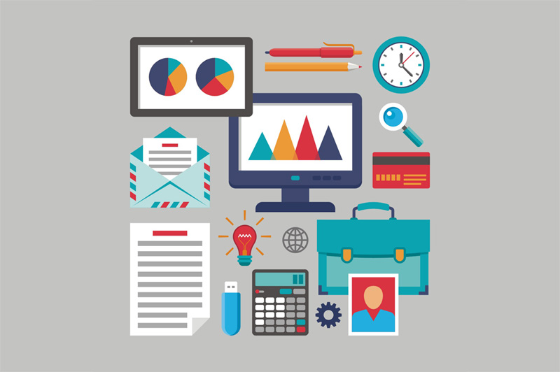 Business office vector icons in flat design style for different creative works. 100% vector! Zip file contain: EPS 8, JPG.