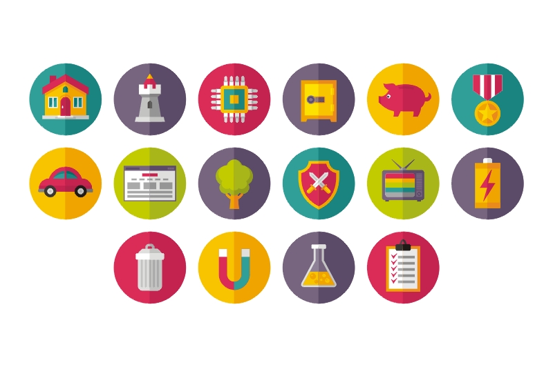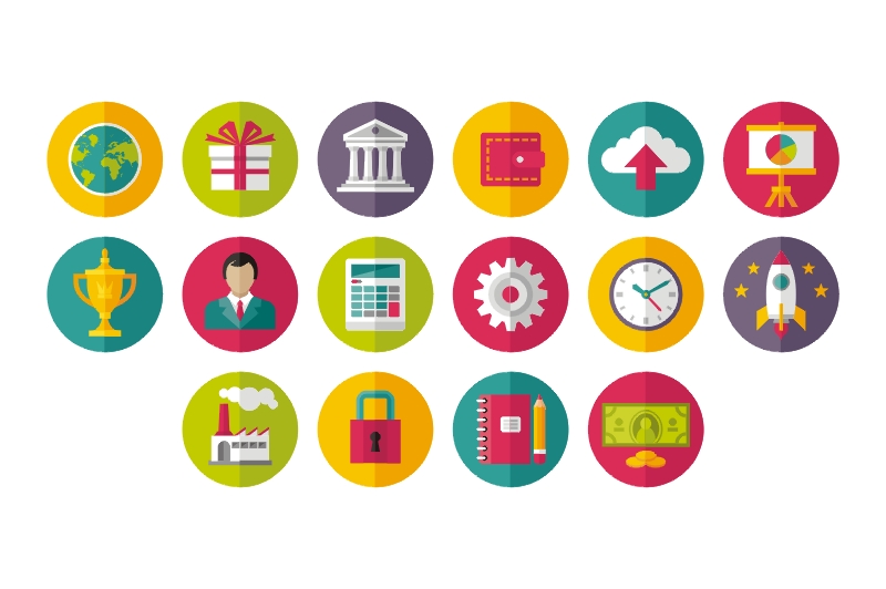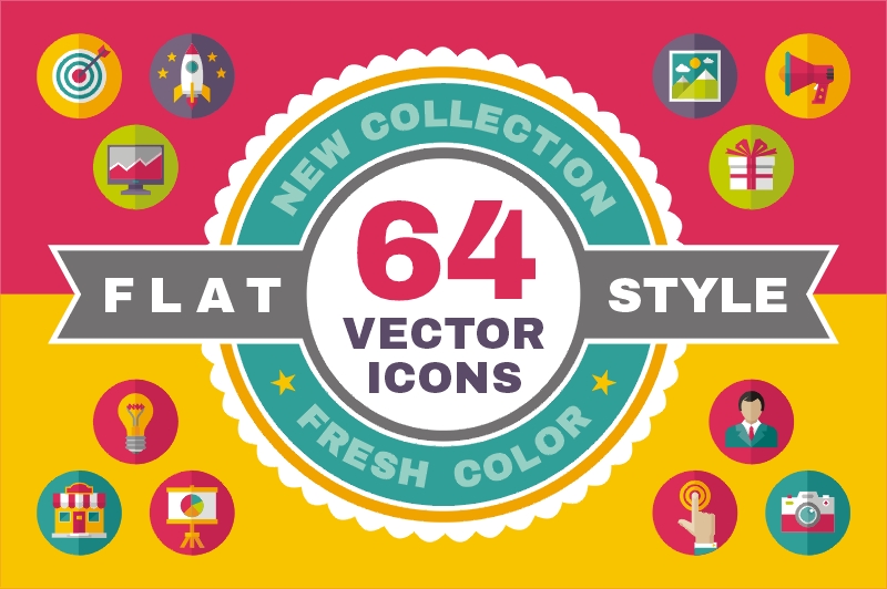 15. 64 Vector Icons in Flat Design Style by Sergey Korkin