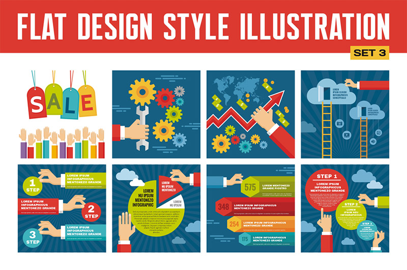 Infographic Concept with Icons & Hands in Flat Design Style. 100% vector! Zip file contain: EPS 8, JPG.