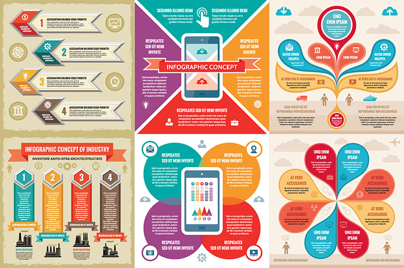 6 infographic vector concept for creative business presentation, booklet, website. 100% vector! Zip file contain: EPS SC3 (CMYK, text and curves), JPG.