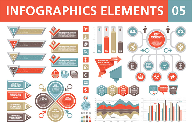 All these vector elements from Sergey Korkin are ready for print or online use! You can create amazing business infographics or just some print reports with professional style in minutes.