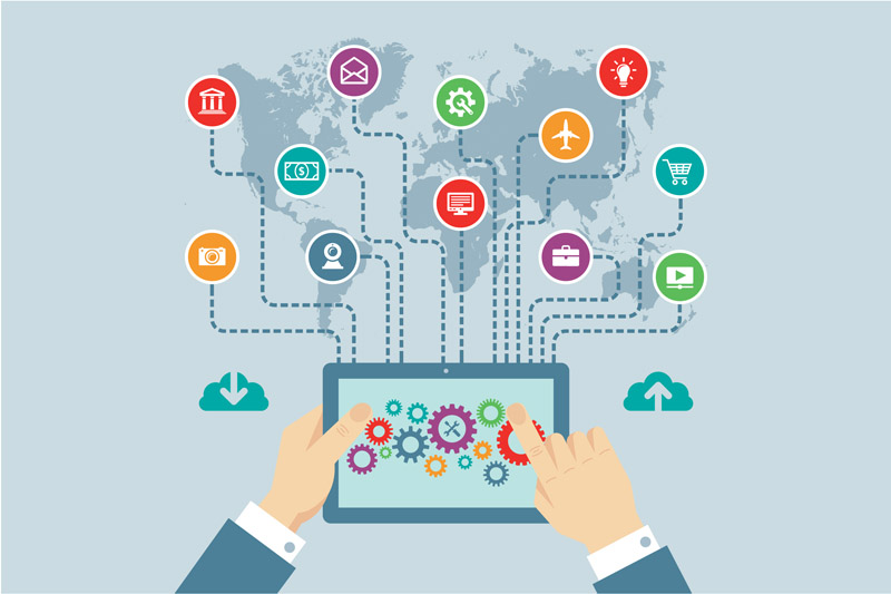 21. Tablet with Hands & Icons by Sergey Korkin