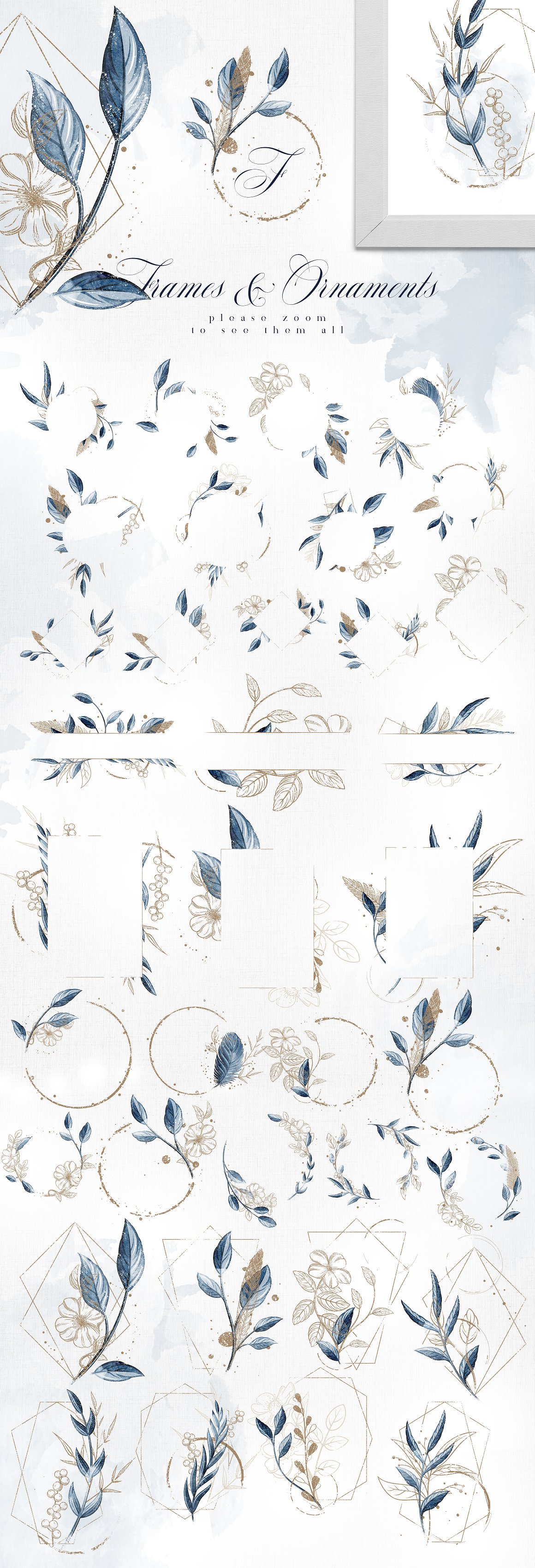 Everything in this collection is custom created. I am merged watercolour hint with golden lines 🙂 I hope you like and enjoy Fleur du Froid.