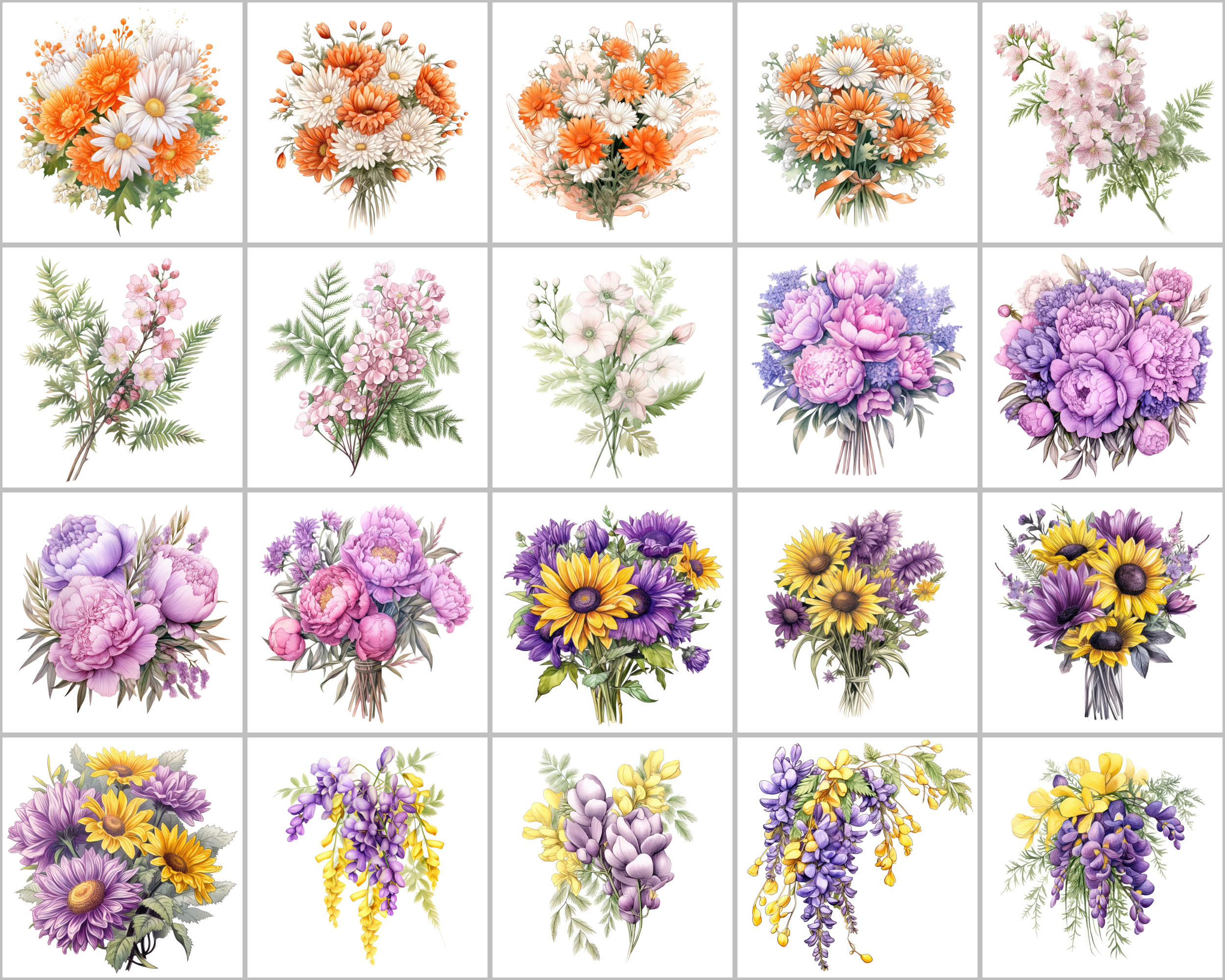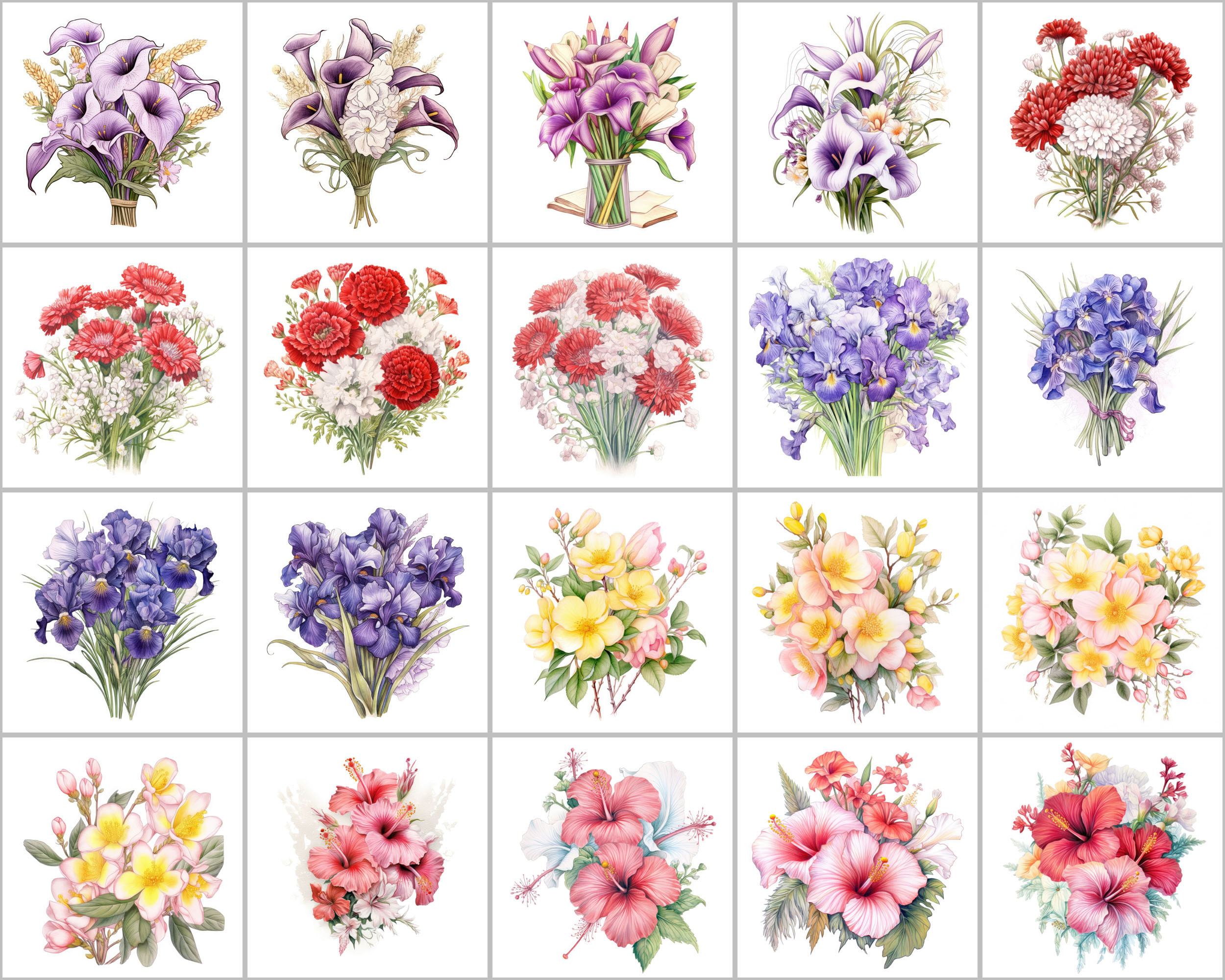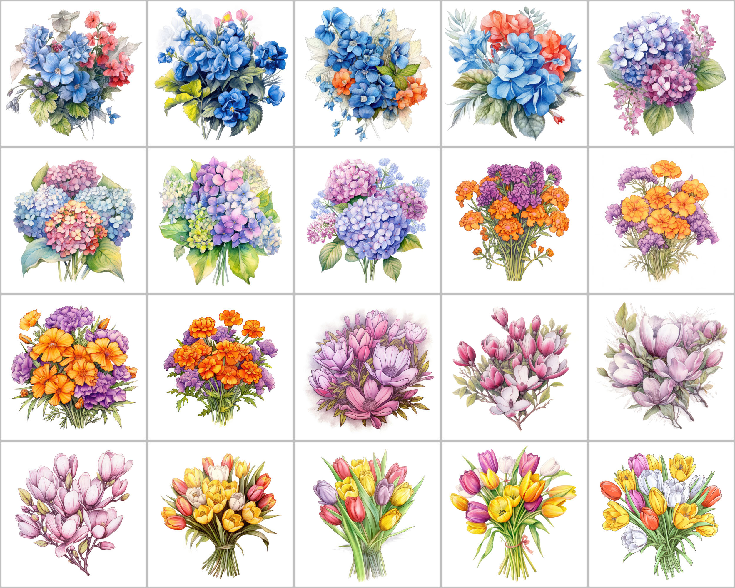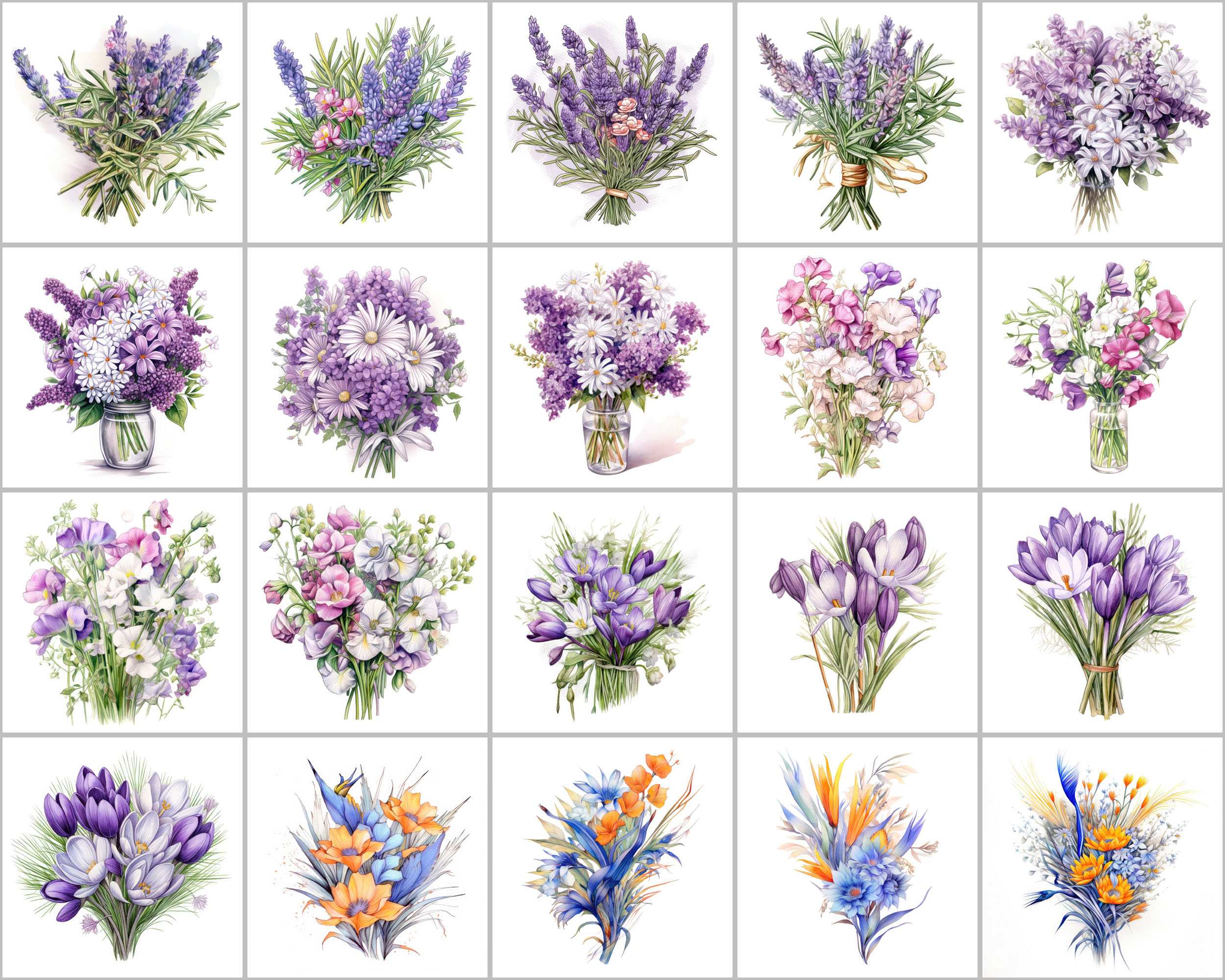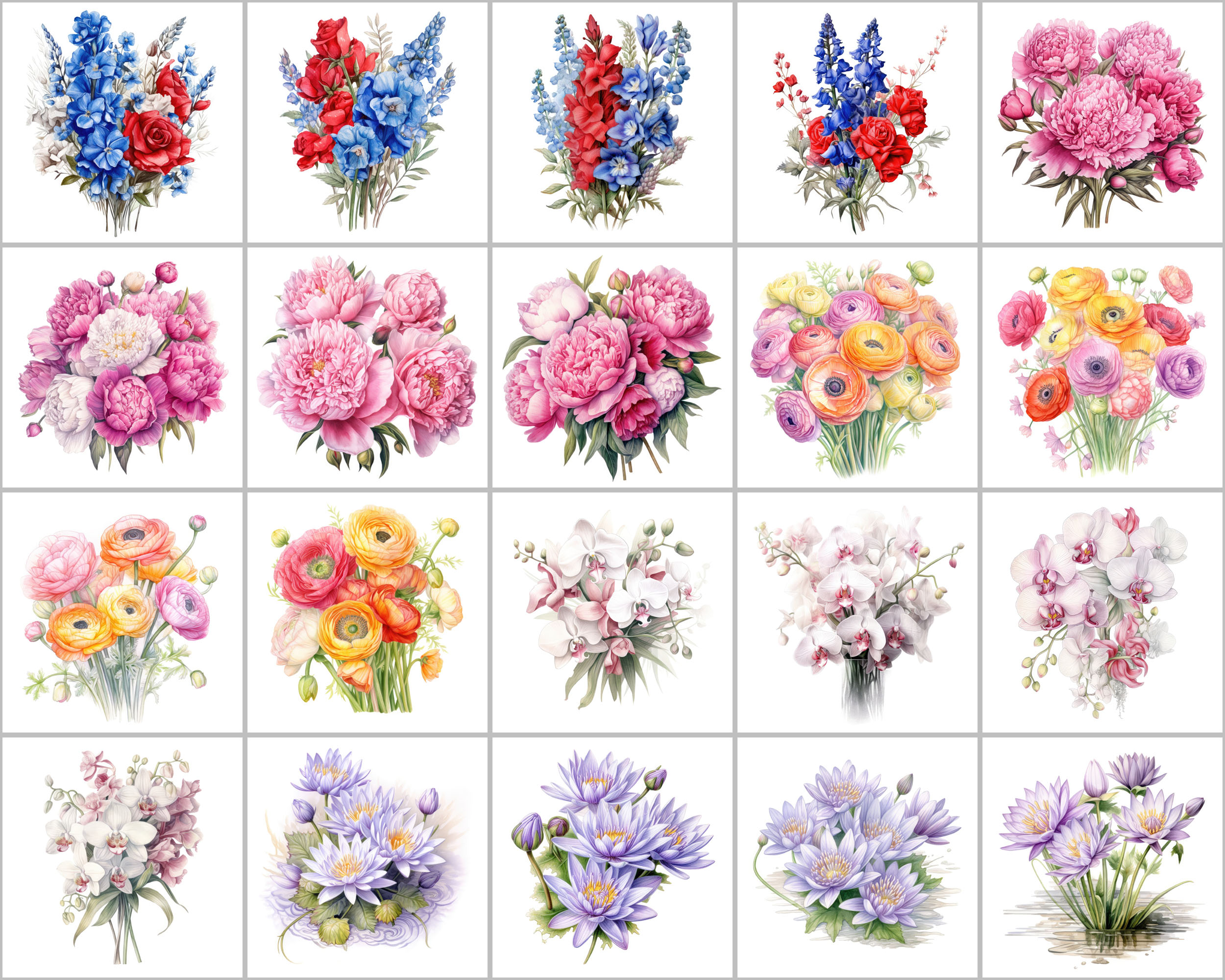 - 200 colorful flower bouquet illustrations – Ai generated digital illustrations for your new web or print designs!