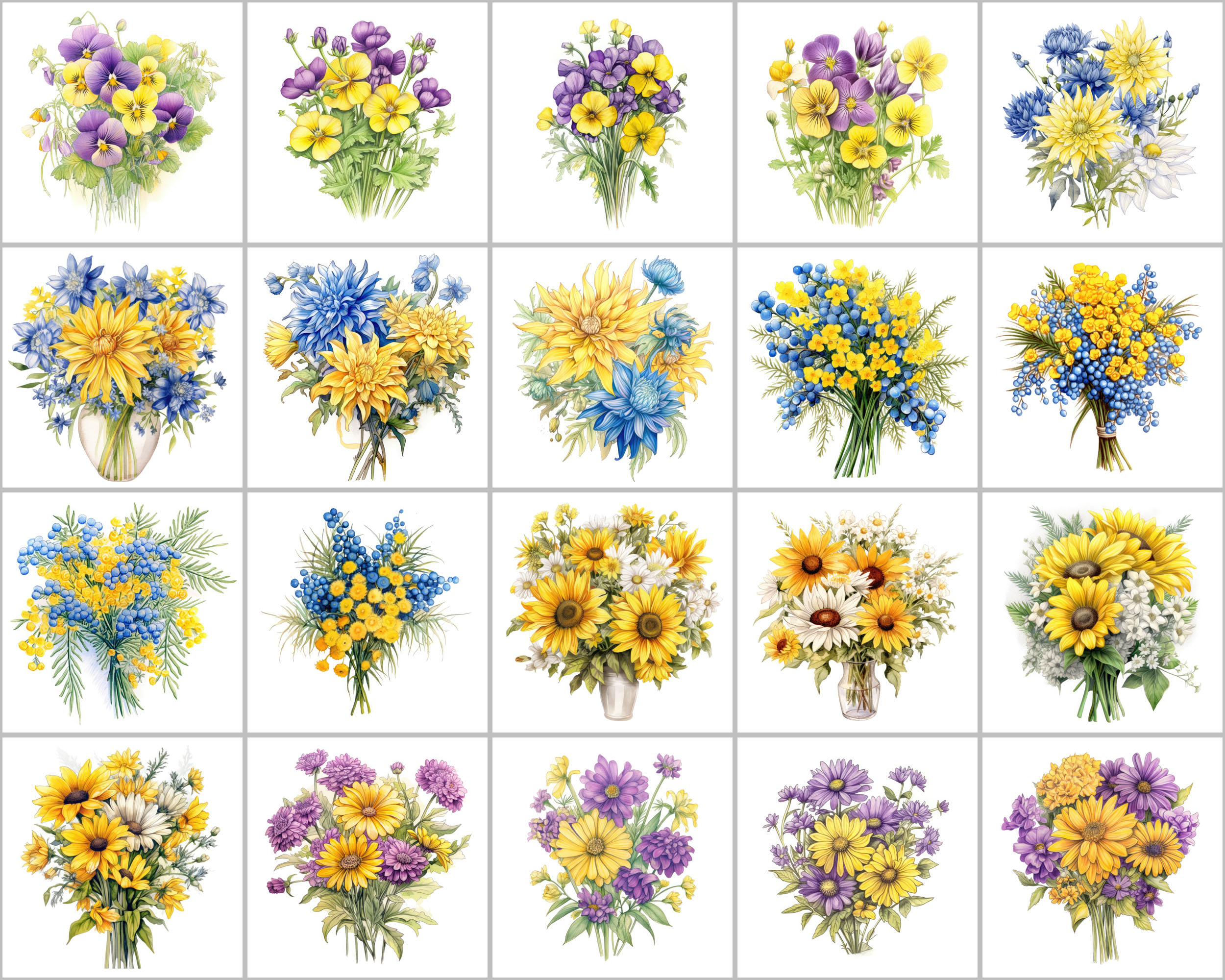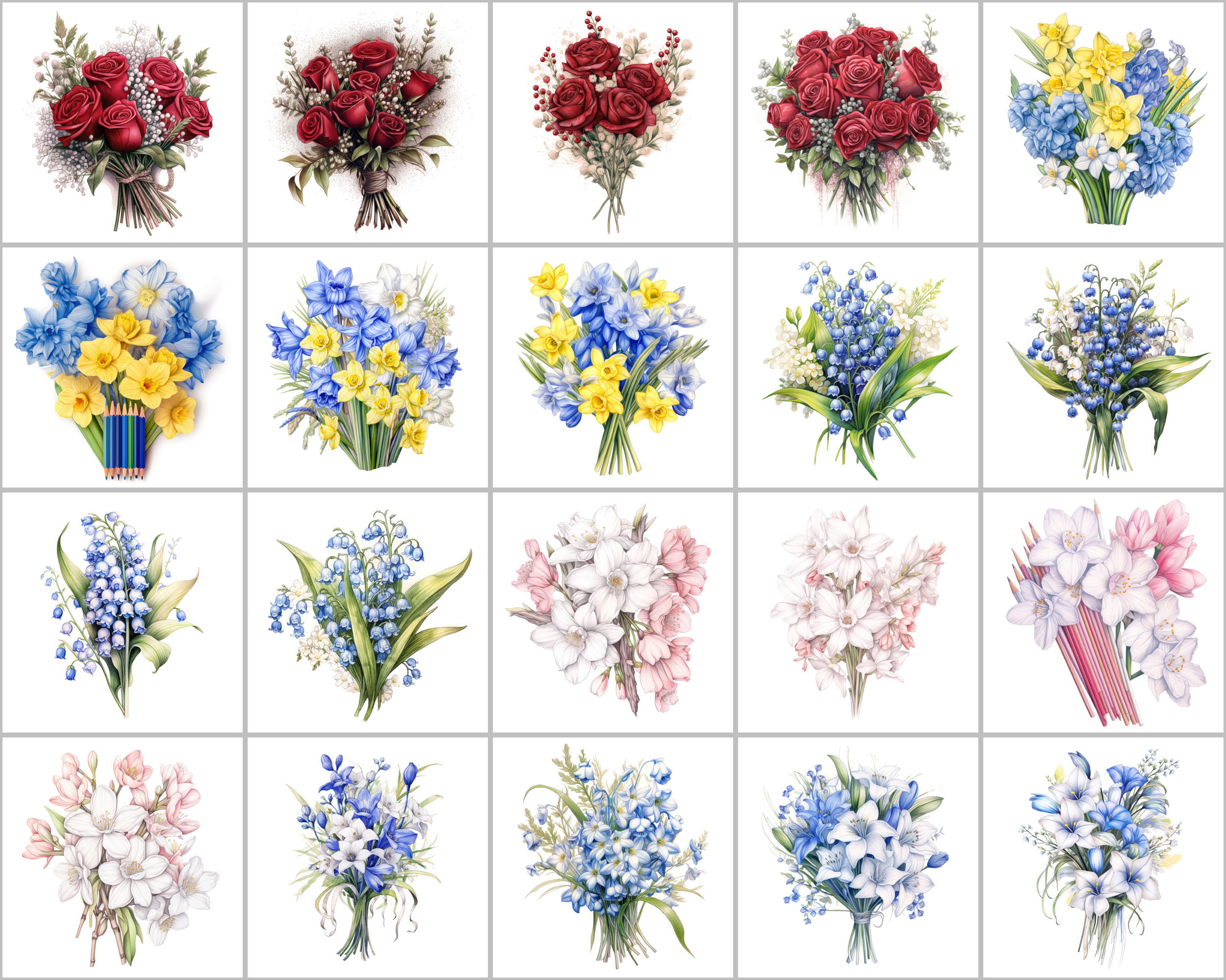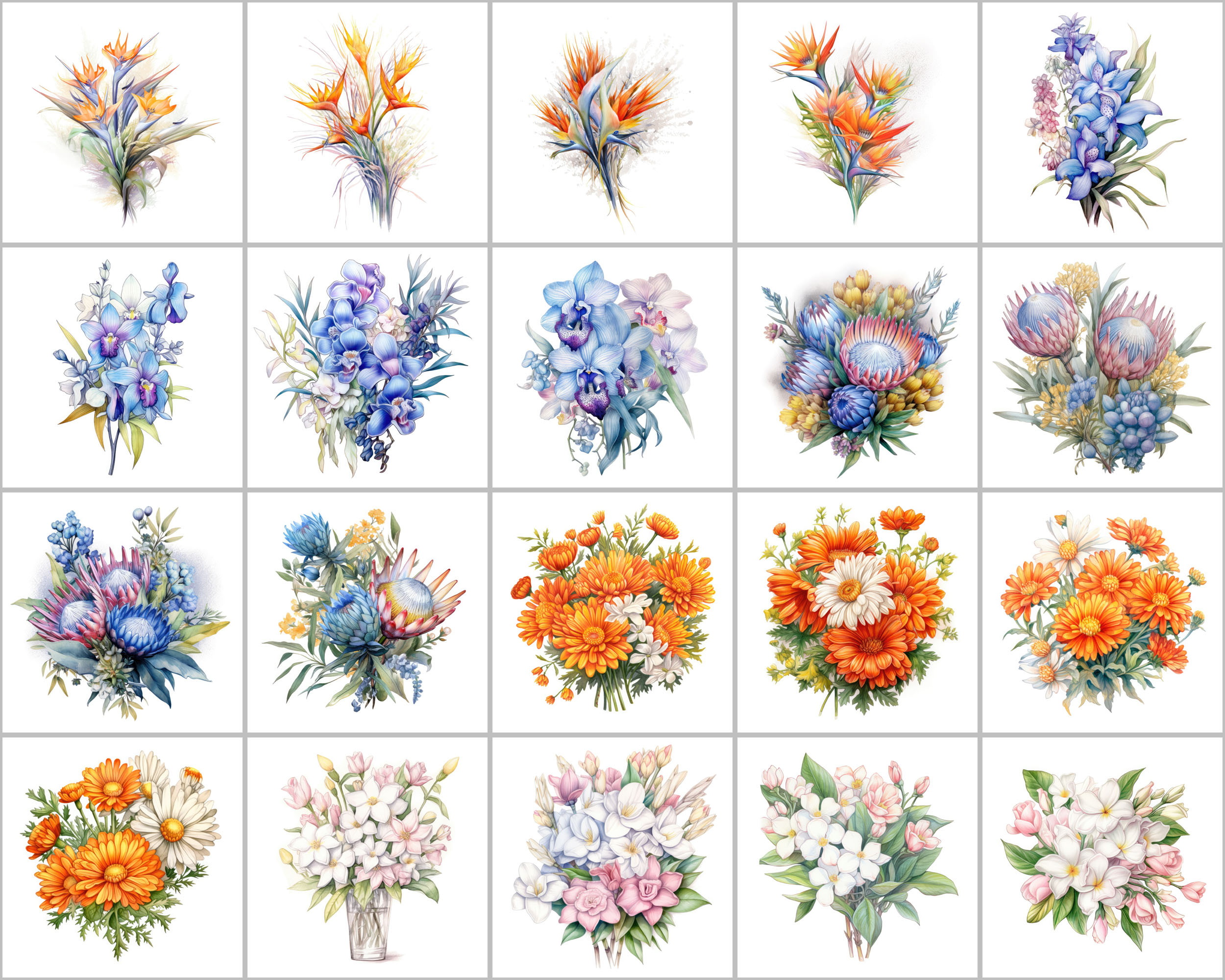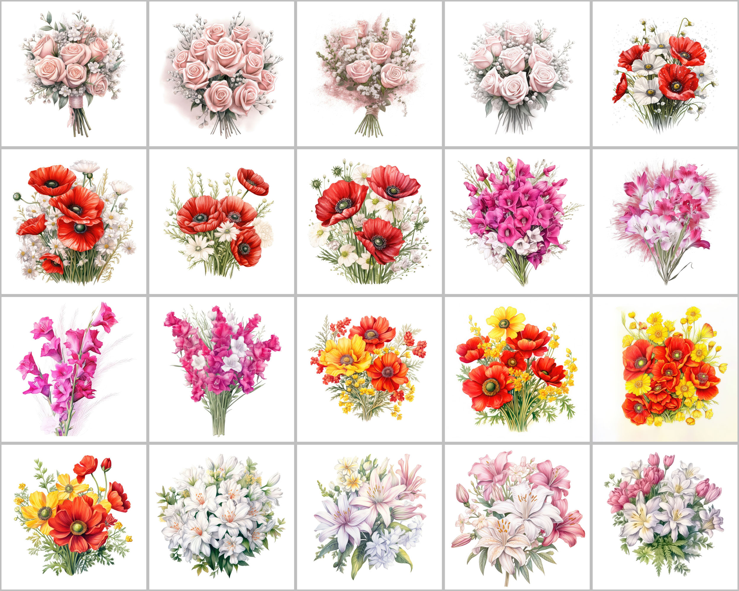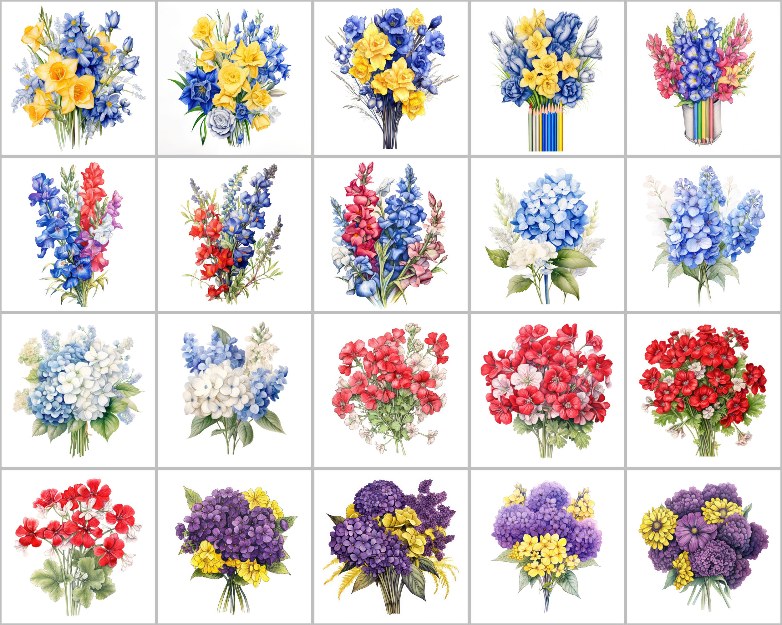 - 200 colorful flower bouquet illustrations – Ai generated digital illustrations for your new web or print designs!