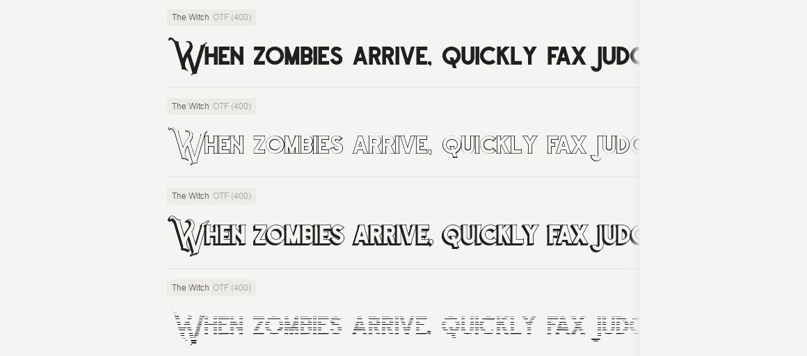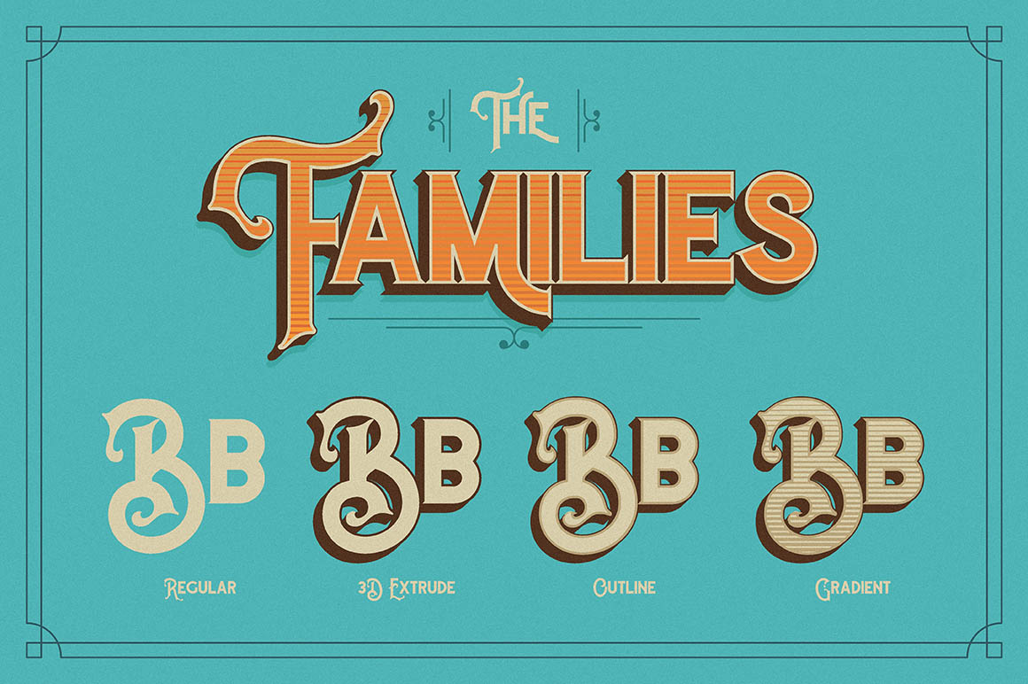 Inspired by the font of late 1800’s, The Witch is a kind of layered font family with four styles. Regular, Outline, Gradient and 3D Extrude. Vintage atmosphere is very thick felt at this font. Circus, Carnival, coffee, cigarettes, and the barber is the objective of this font.