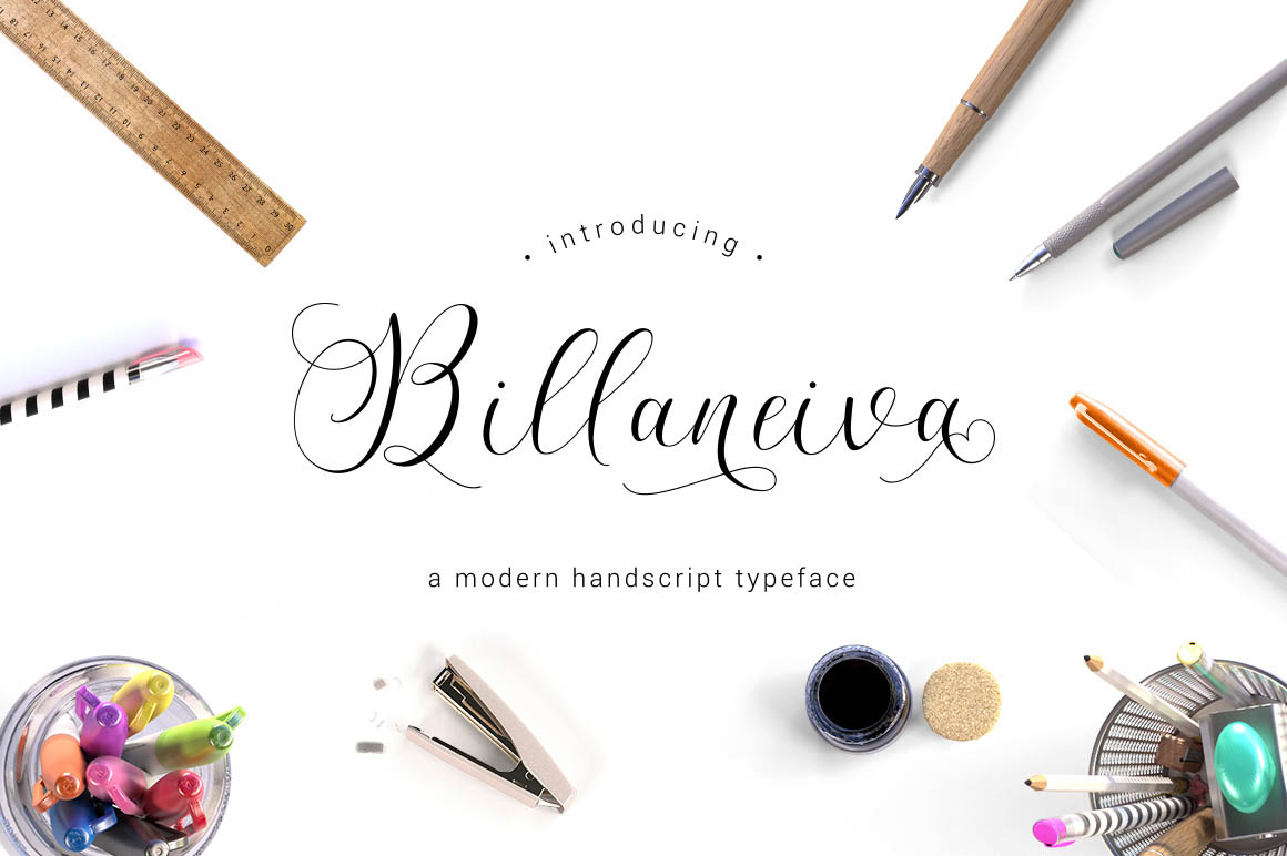 Hello world..!! this is Billaneiva typeface, simple and easy to create awesome lettering, just type your words and then you will immediately see the great results. Comes with upper and lowercase characters, large set of punctuation glyphs, numerals, and supports international languages. Stylistic alternates for several key lower case characters are also available, accessible in the Adobe Illustrator Glyphs panel.