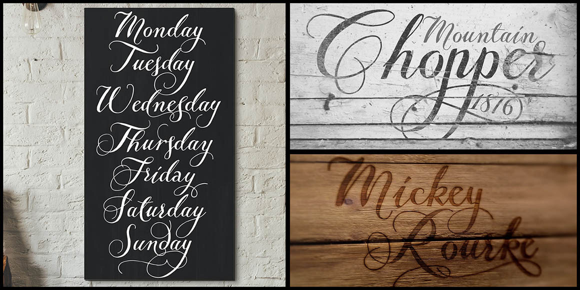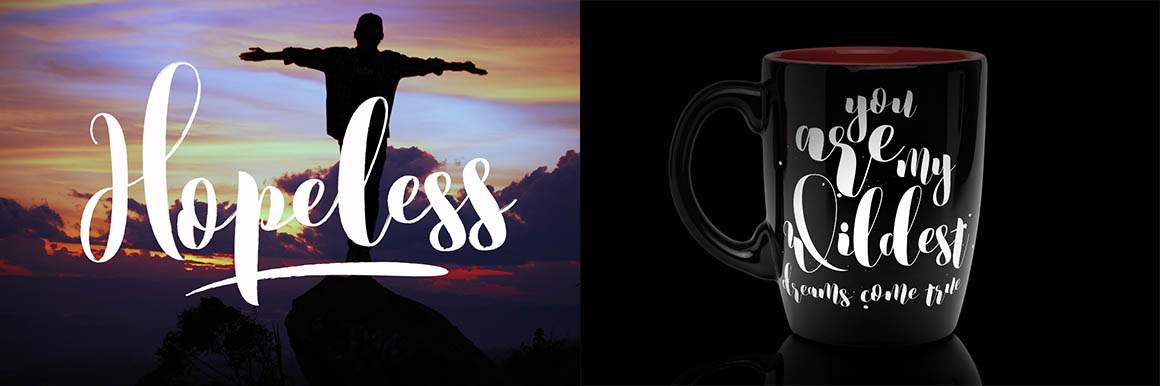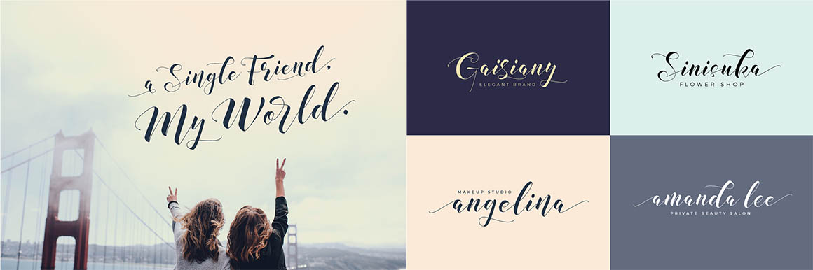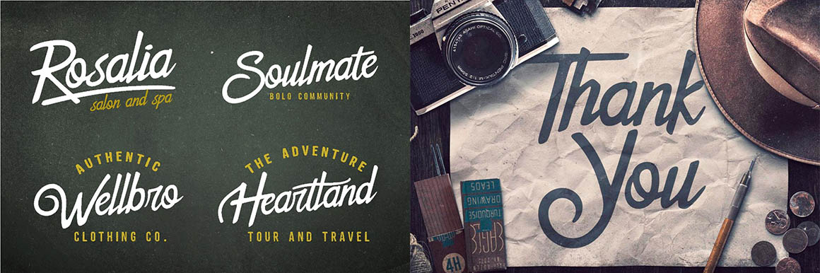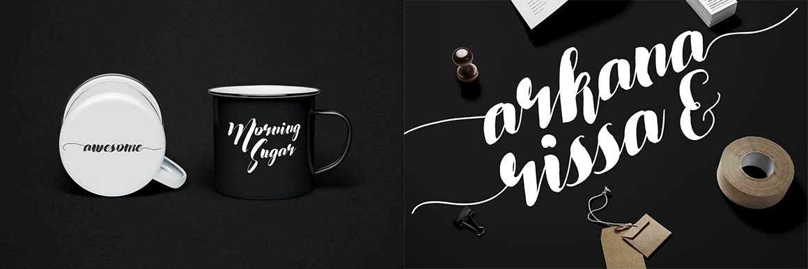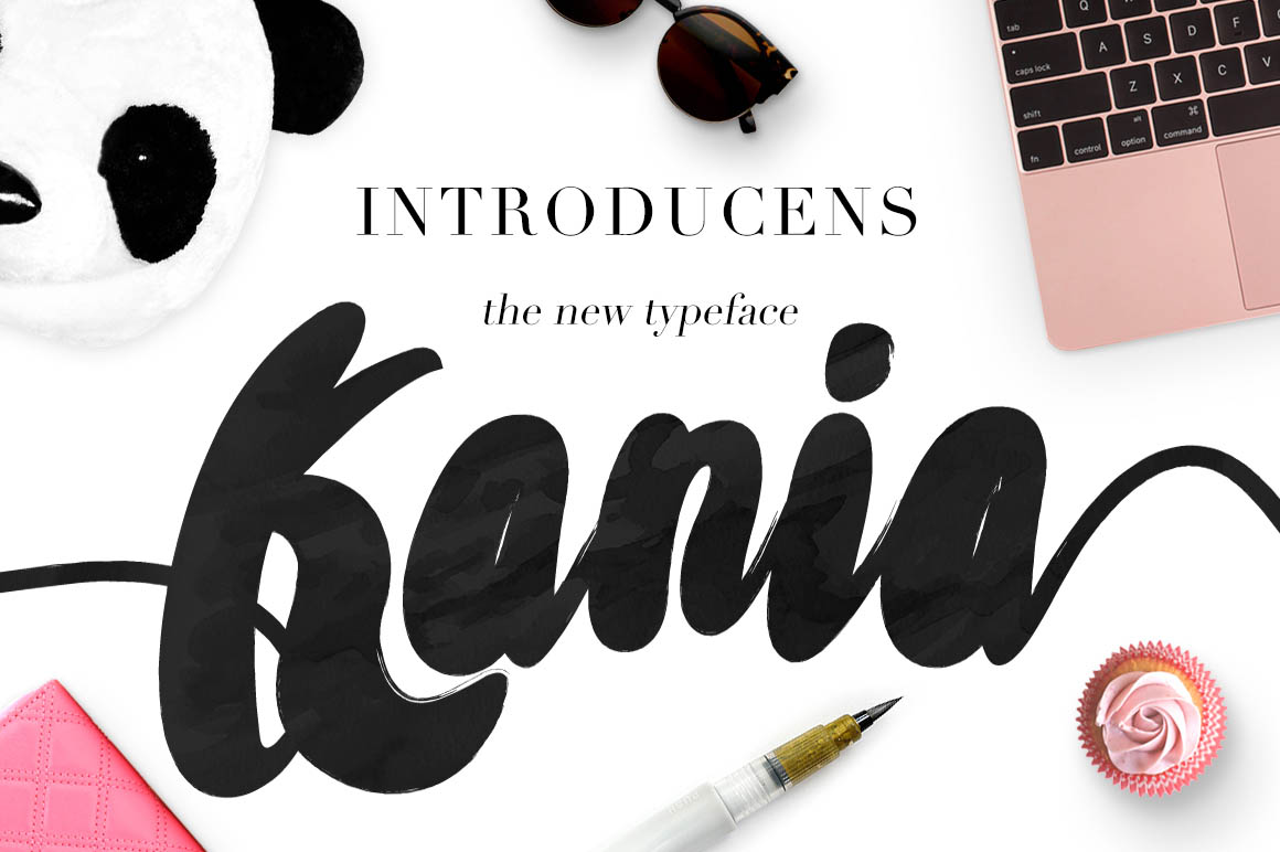 Give your designs an authentic brush handcrafted feel. “Kania Script” is perfectly suited to stationery, logos and much more with long swashes.