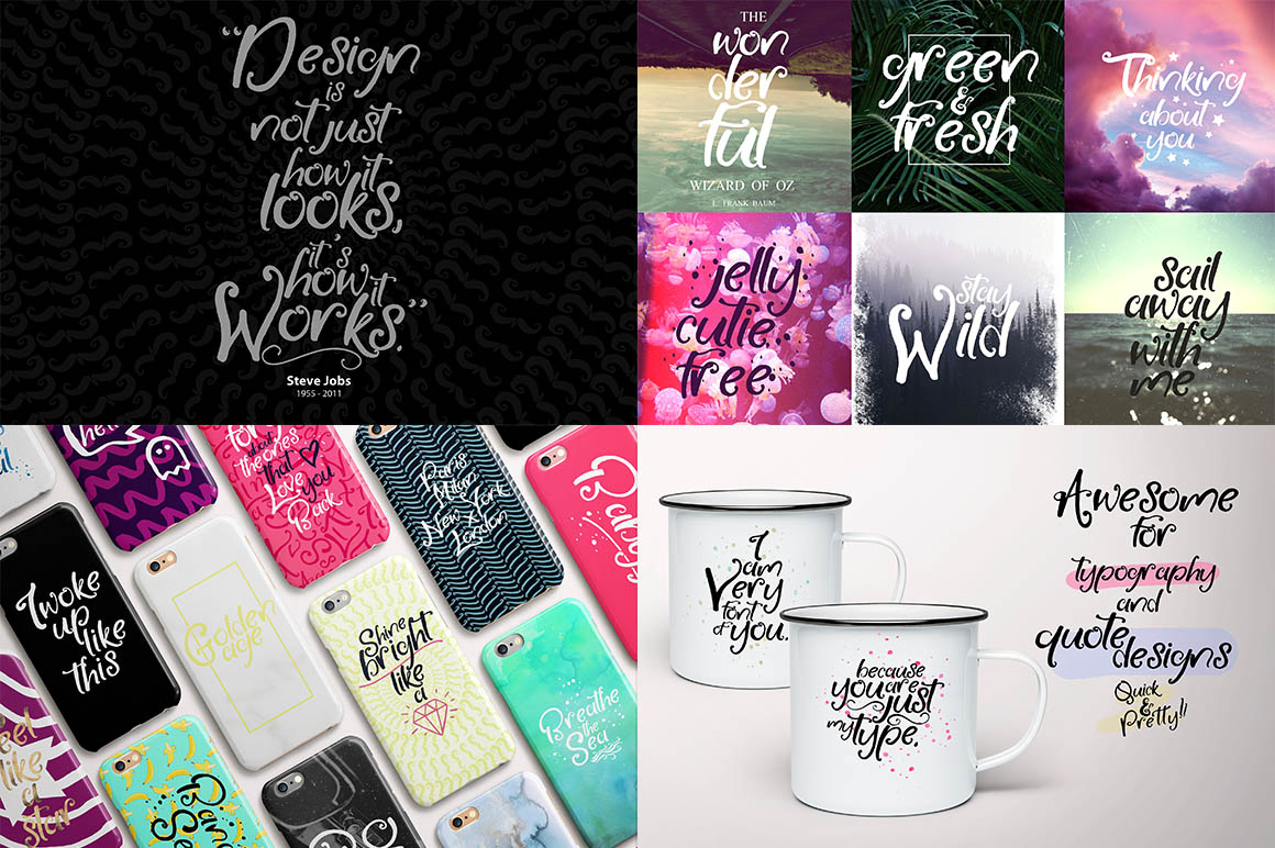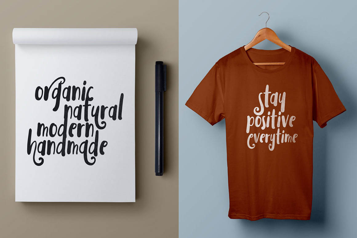 Give your designs an authentic brush handcrafted feel. “Easy Brush Font” is perfectly suited to stationery, logos and much more.