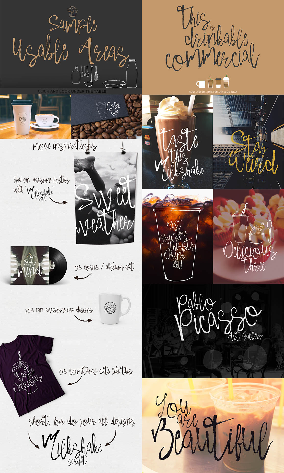 Introducing Milkshake Script !! This new concept. smooth, powerful, natural, original, artistic, loving, coffee-scented,some milk, dreamer, inspiration, could become the basis of works like a masterpiece. I help your new design with Milkshake Script with Extra Crema and Chocolate . You can think of all kinds to help you with your issue and design quality and natural at the same time our business to provide the original work.