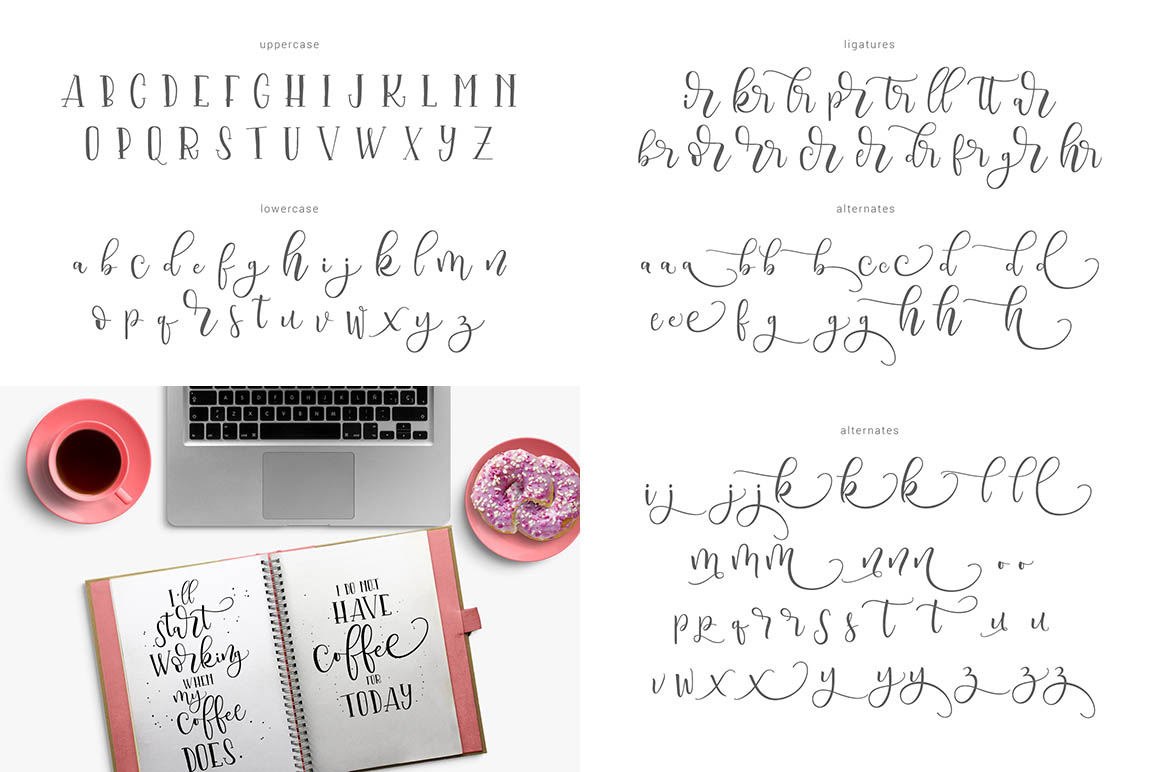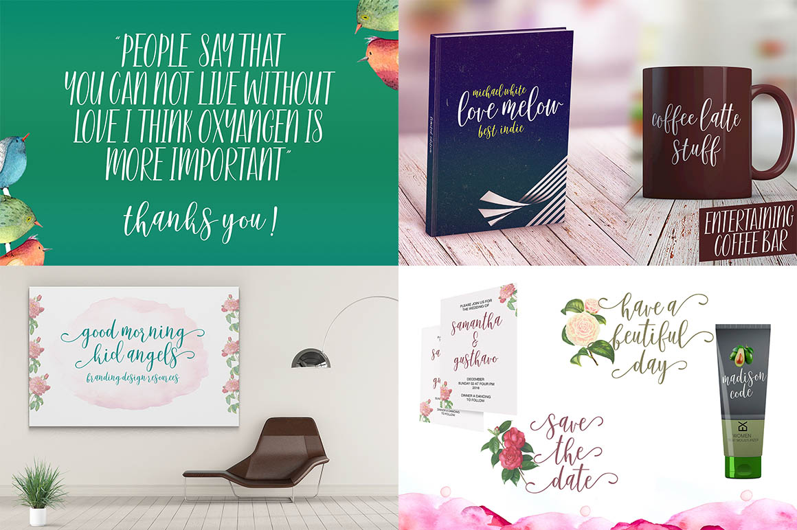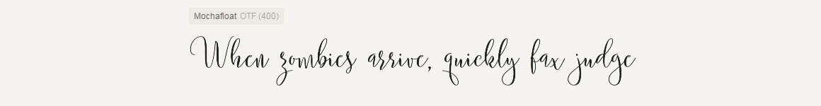 Mochafloat Script is a new modern calligraphy Typeface Fonts collection from Ianmikraz studio, combines from copperplate to contemporary typeface, classic, beauty and elegant touch. Mochafloat Script features 380 glyphs and 200 alternate character contain with opentype features. Stylistic Alternates, Standart Ligature and more.You can access all those alternate characters by using OpenType savvy programs such as Adobe Illustrator, Adobe InDesign and CorelDraw X6-X7. For other programs that doesn’t support OpenType Features or Glyphs Panel such as Photoshop, you can use Character Map in Windows to access the alternate characters 🙂