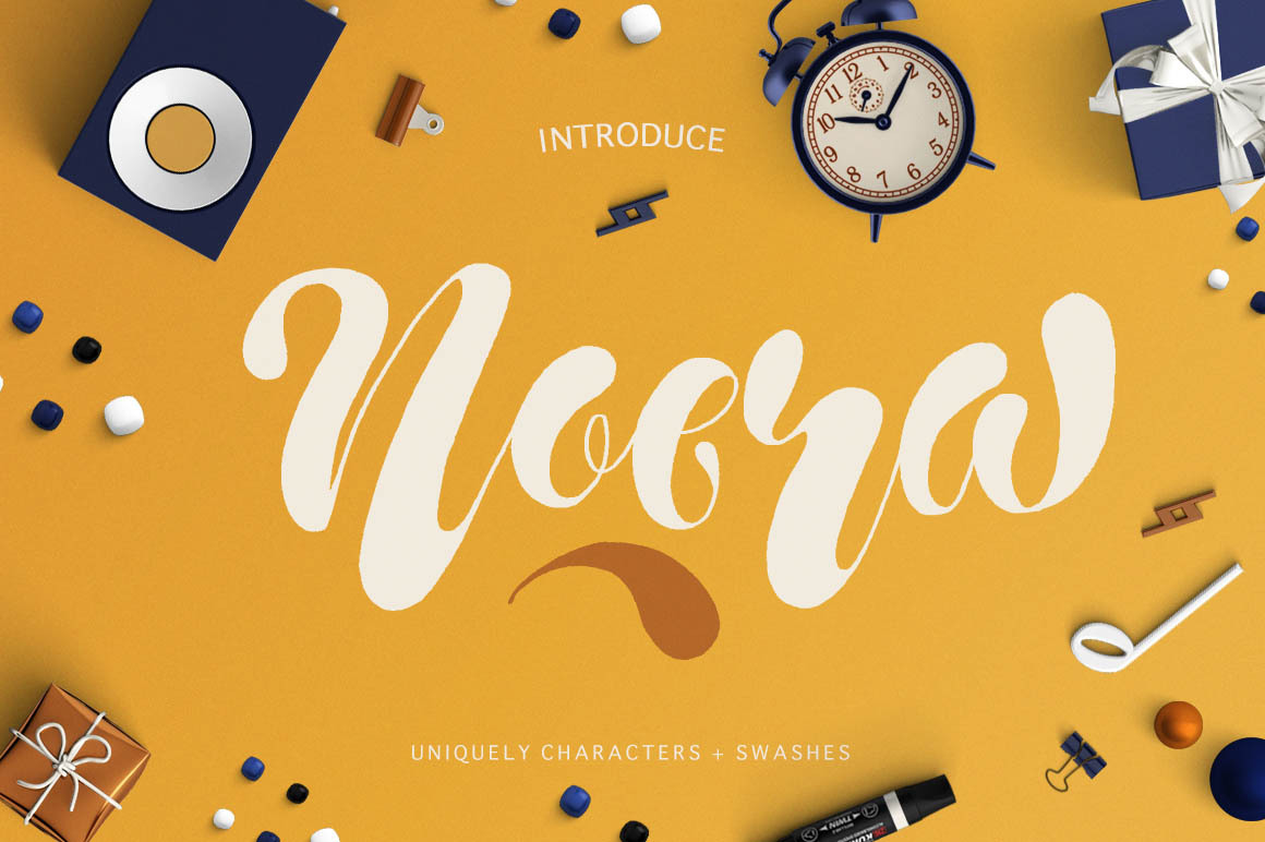 Noera Typeface is a new cute & uniquely hand made typeface for typography, lettering, logotype and more with Opentype Features included and uniquely characters + swashes it’s make perfect to create Elegant Design, Modern, and more.