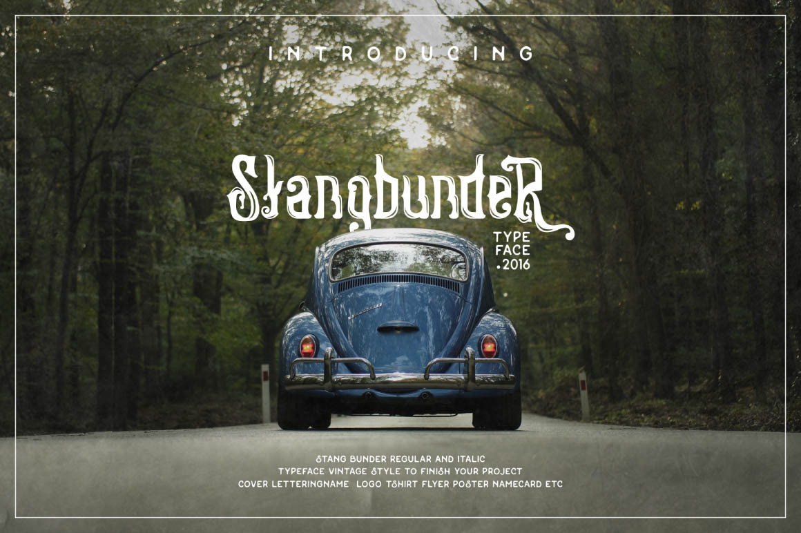 Stangbunder Typeface is a vintage display type. It suitable for branding, logos, quotes, blog design, modern advertising design, invitation, Home decor, Book/Cover Title, Invitation, special events, movie poster, album cover, t-shirts, any handmade vintage type needs and more.