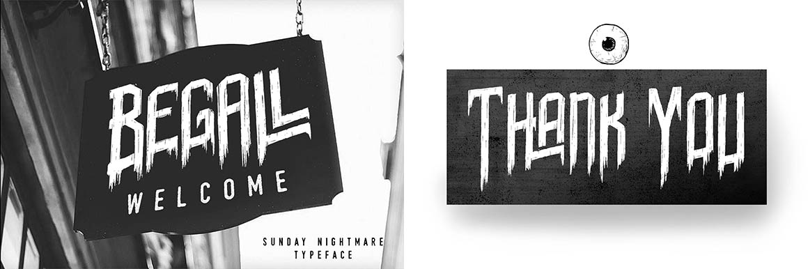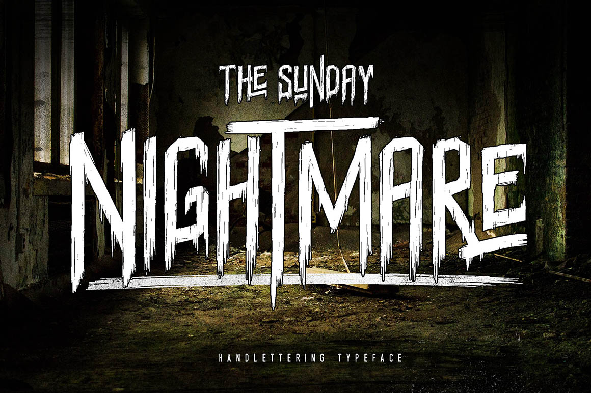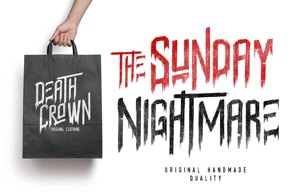 Sunday Nightmare Typeface is handmade font that inspired by movie “halloween”,”the walking dad”,”and local ghost movie in my country. Suitable for digital lettering, branding, t-shirt, print, dark business cards, logo, poster, t-shirt, and for any graphic design.