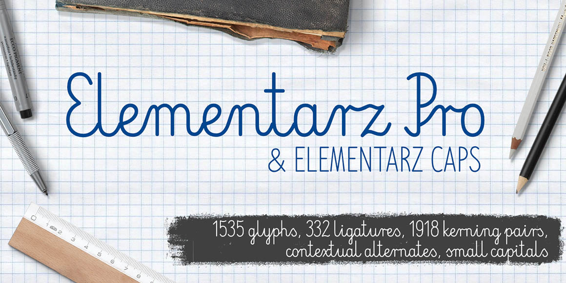 Elementarz Pro is a handwritten, monoline, fully connected script with ligatures and contextual alternates to help with flow and readability. Language support includes Western, Central and Eastern European character sets, as well as Baltic and Turkish languages.