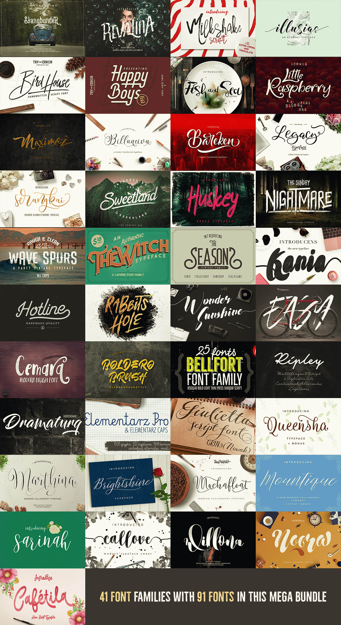 - 41 font bundles with 91 amazing fonts and some extra graphics!