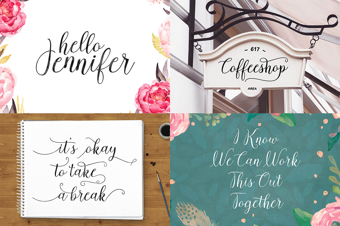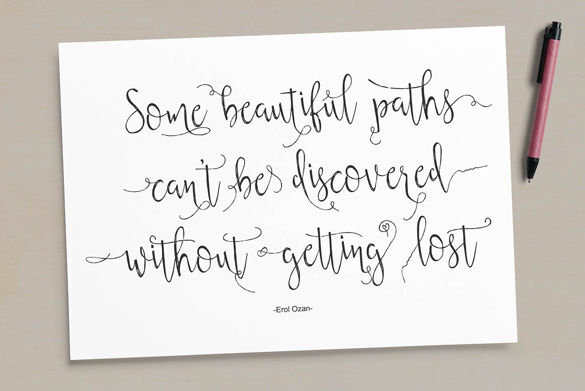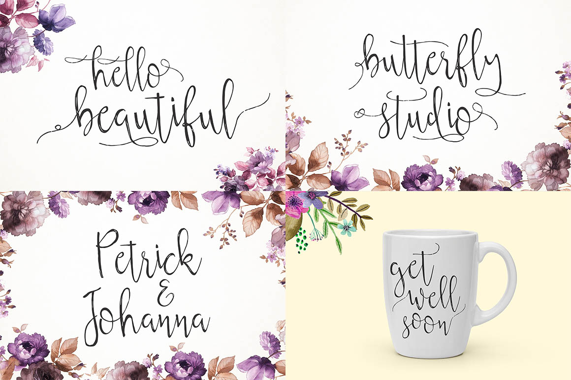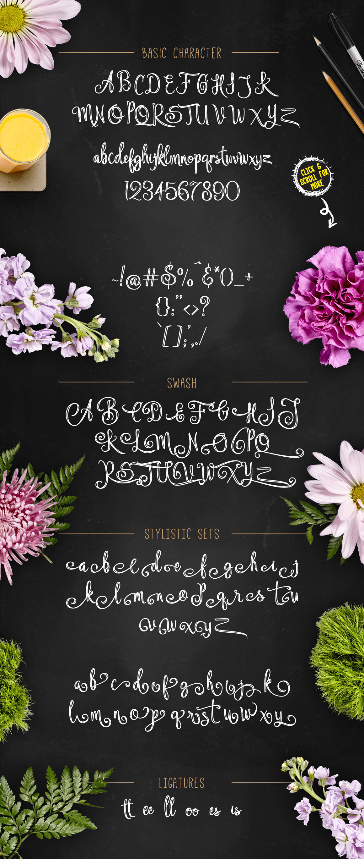 Hellifa Script a new fresh & modern script with a handmade calligraphy style, decorative characters and a dancing baseline! So beautiful on invitation like greeting cards, branding materials, business cards, quotes, posters, and more! Hellifa Script come with 774 glyphs. The alternative characters were divided into several Open Type features such as Swash, Stylistic Sets, Stylistic Alternates, Contextual Alternates, and Ligature. The Open Type features can be accessed by using Open Type savvy programs such as Adobe Illustrator, Adobe InDesign, Adobe Photoshop Corel Draw X version, And Microsoft Word. And this Font has given PUA unicode (specially coded fonts). so that all the alternate characters can easily be accessed in full by a craftsman or designer