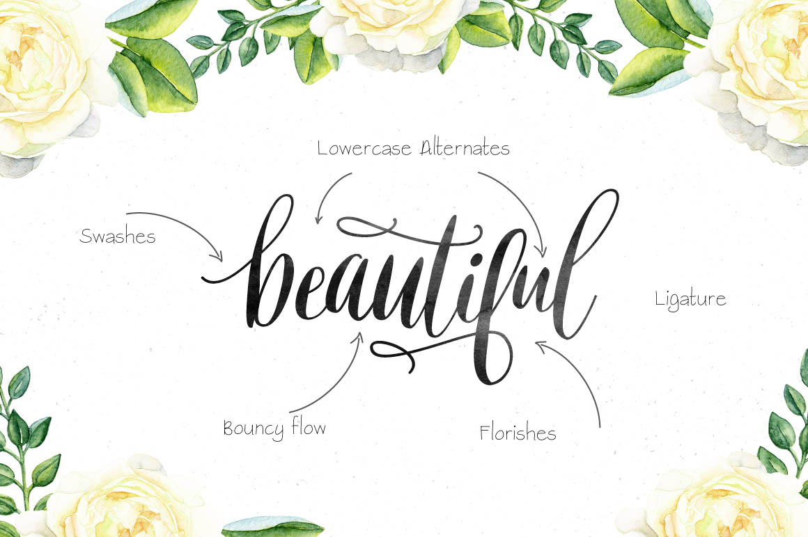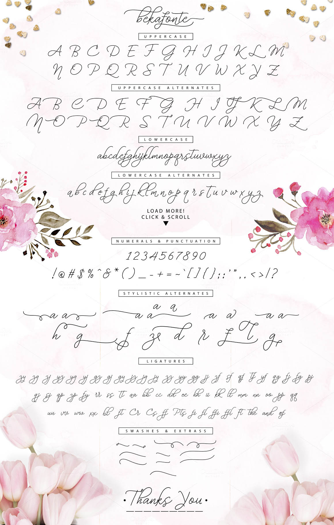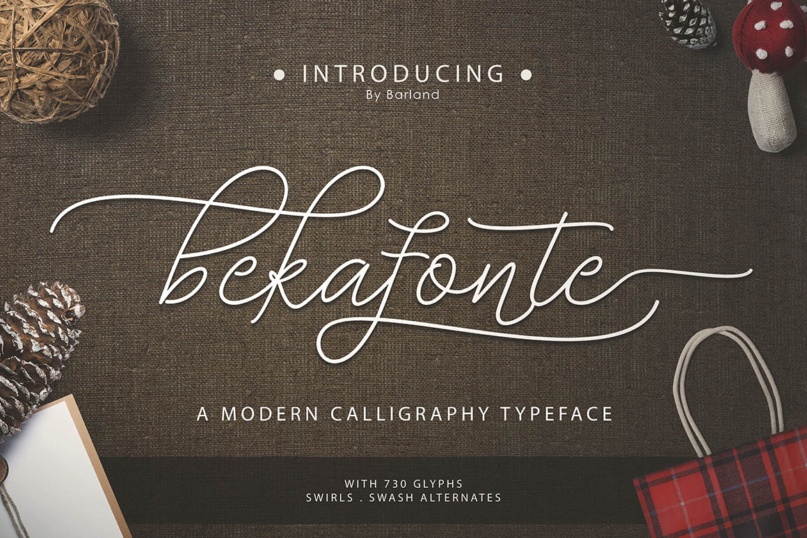 Bekafonte Typeface a fancy, doodley, hand-drawn typeface with alternates and swashes galore. Perfect to add a little whimsy and carefree elegance to your next project. To use a swash font, type lowercase a-z for the initial (Beginning of the word) font swashes and type uppercase A-Z for the terminal (Tail of the word) swashes. Bekafonte Typeface come with 730 glyphs. The alternative characters were divided into several Open Type features such as Swash, Stylistic Sets, Stylistic Alternates, Contextual Alternates, and Ligature. The Open Type features can be accessed by using Open Type savvy programs such as Adobe Illustrator, Adobe InDesign, Adobe Photoshop Corel Draw X version, And Microsoft Word. And this Font has givenPUA unicode (specially coded fonts). so that all the alternate characters can easily be accessed in full by a craftsman or designer.