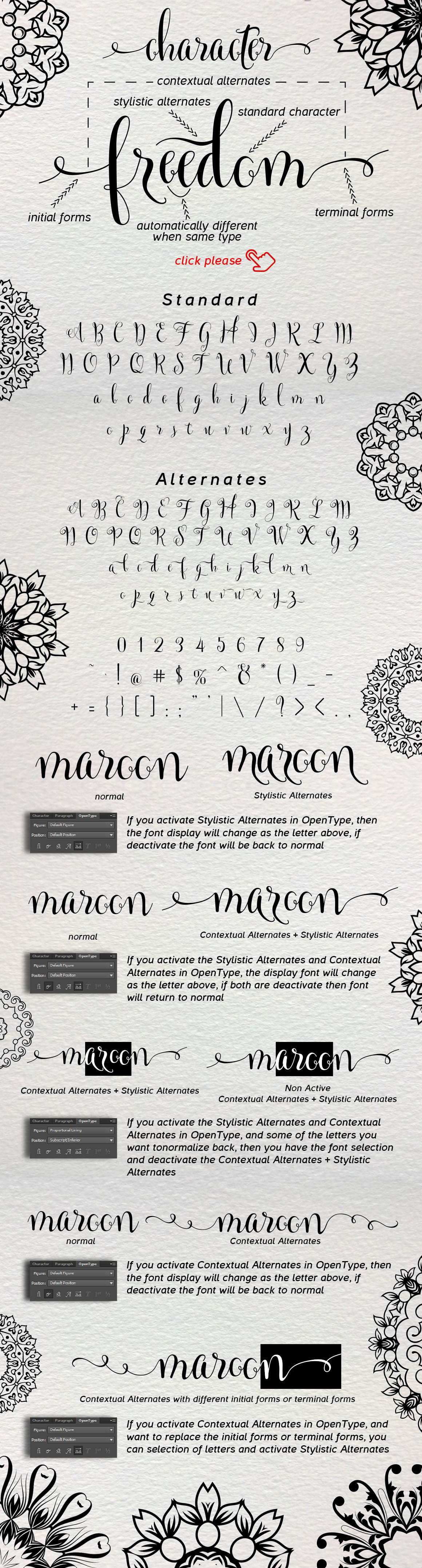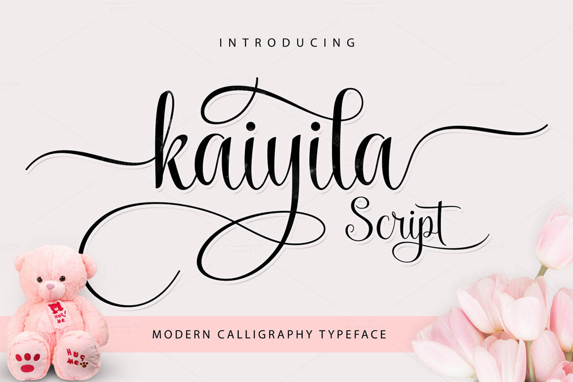 Kaiyila Script a new fresh & modern script with a handmade calligraphy style, decorative characters and a dancing baseline! So beautiful on invitation like greeting cards, branding materials, business cards, quotes, posters, and more! Kaiyila Script including alternate glyph and beautiful swirl in a font including stylistic sets, Ligatures etc. The Open Type features can be accessed by using Open Type savvy programs such as Adobe Illustrator CS, Adobe Indesign & CorelDraw X6-X7 and Microsoft Word. And this Font has given PUA unicode (specially coded fonts). so that all the alternate characters can easily be accessed in full by a craftsman or designer.