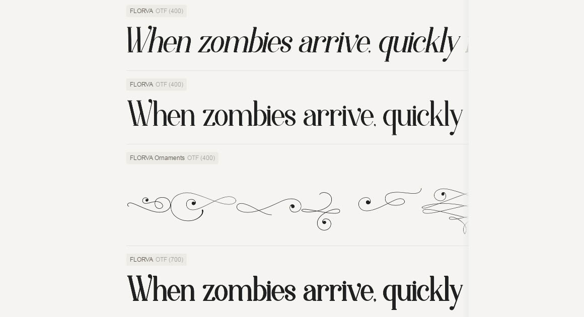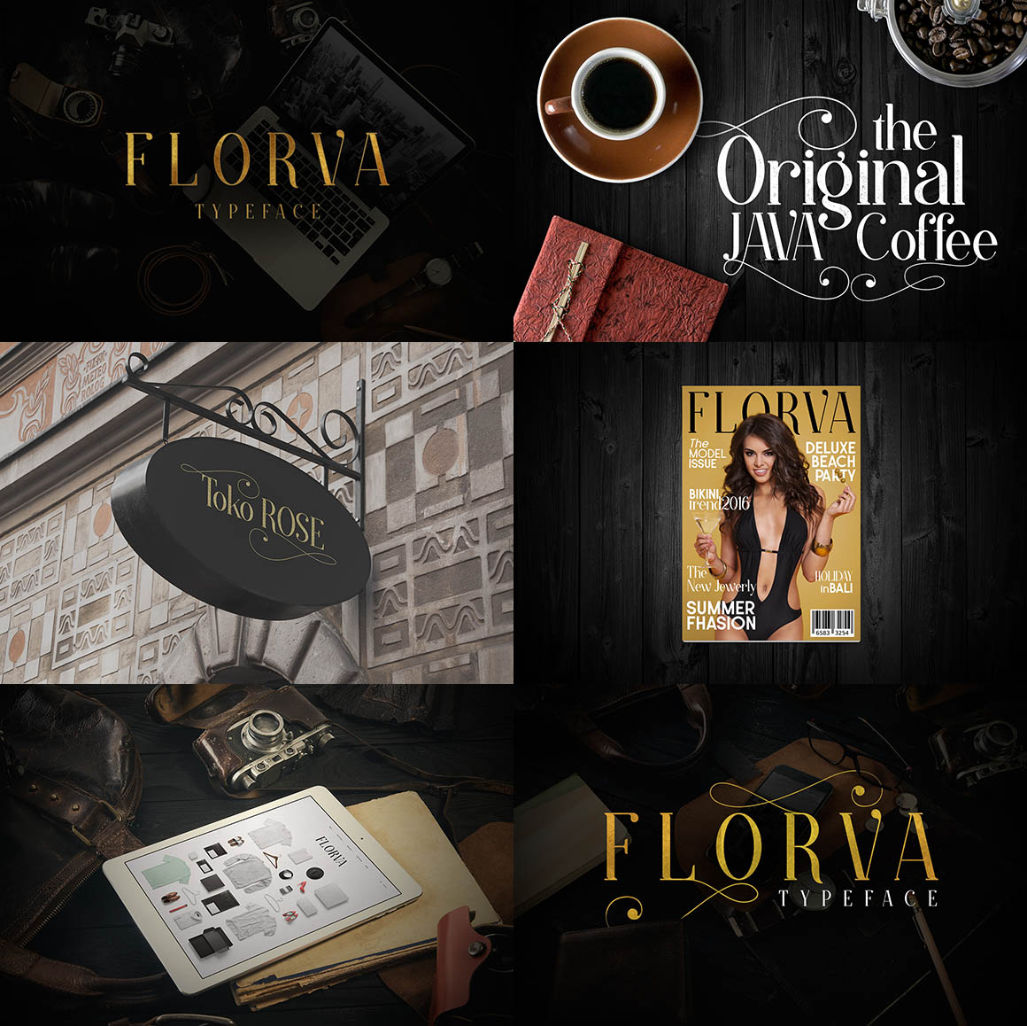 Introducing FLORVA TYPEFACE a simple and beautiful font made with persistence and passion. FLORVA typeface have a unique character when compared with the others serif font, it have special bracketed serif shape and combine with beautiful swirl ornament’s. FLORVA typeface is suitable for simple logo design, website header, wedding design.