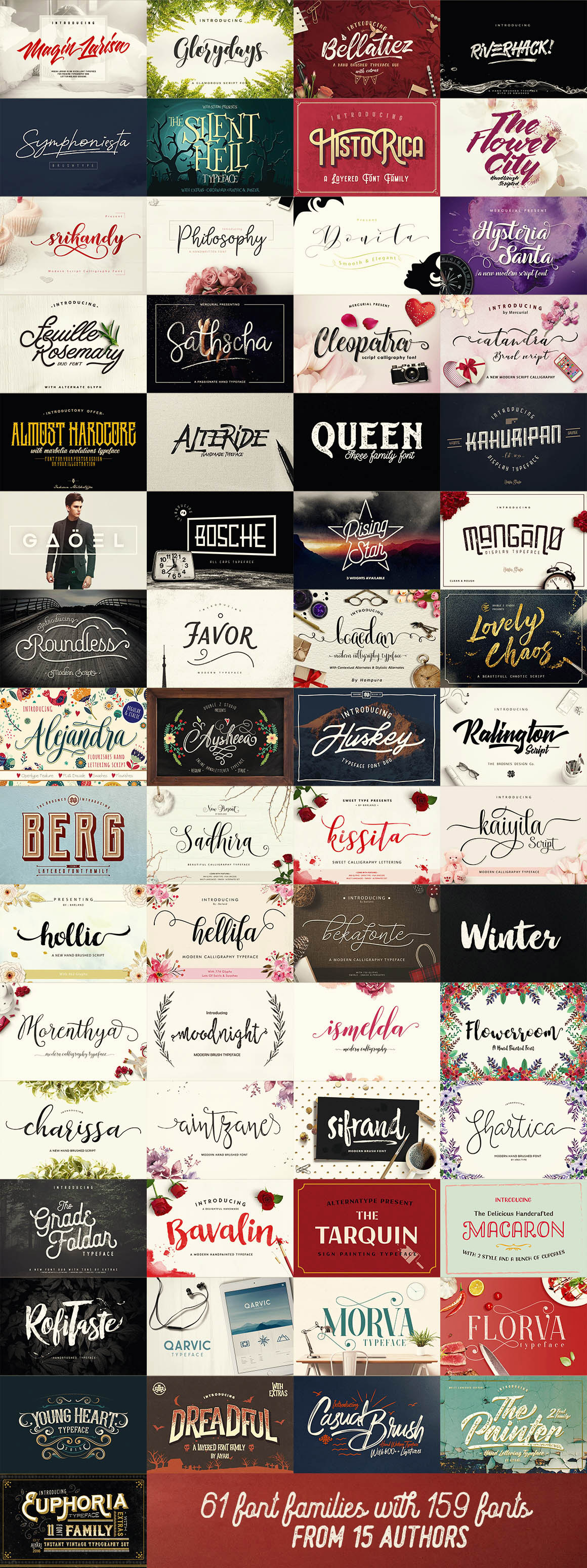 - 61 font bundles with 159 amazing fonts and some extra graphics!