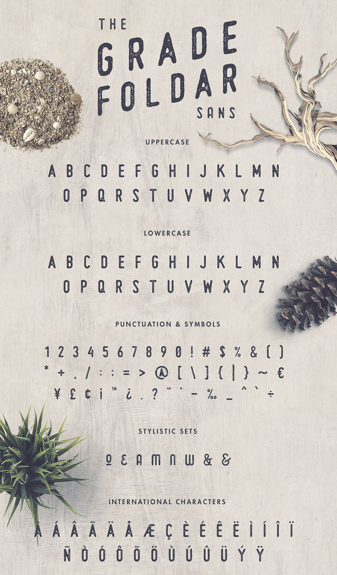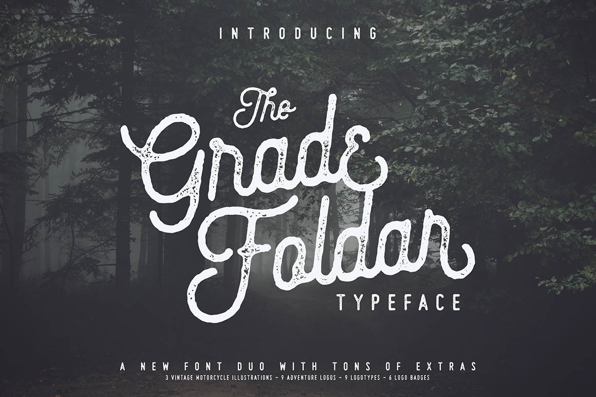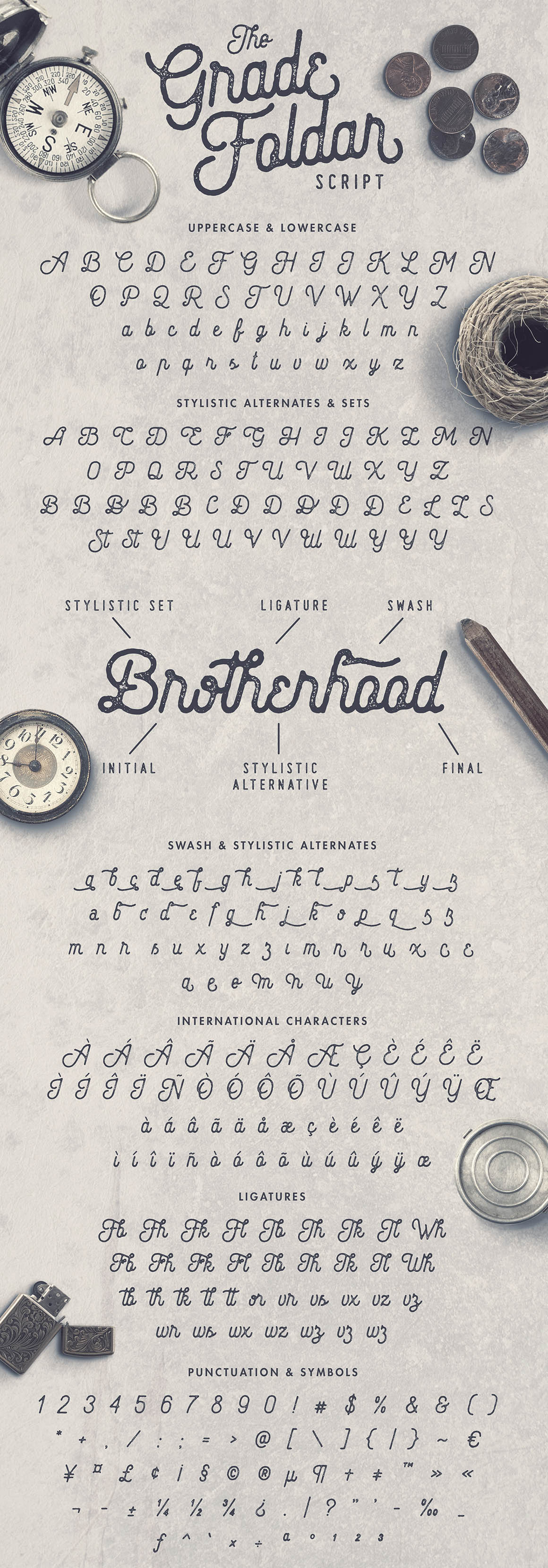The Gradefoldar Typeface is a handcrafted and rough typeface duo with tons of extras. The font includes uppercase and lowercase, initial and terminal letters, a lot of alternates and swashes, punctuation and symbols, ligatures and multiple language support.