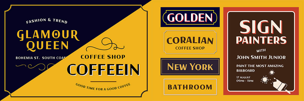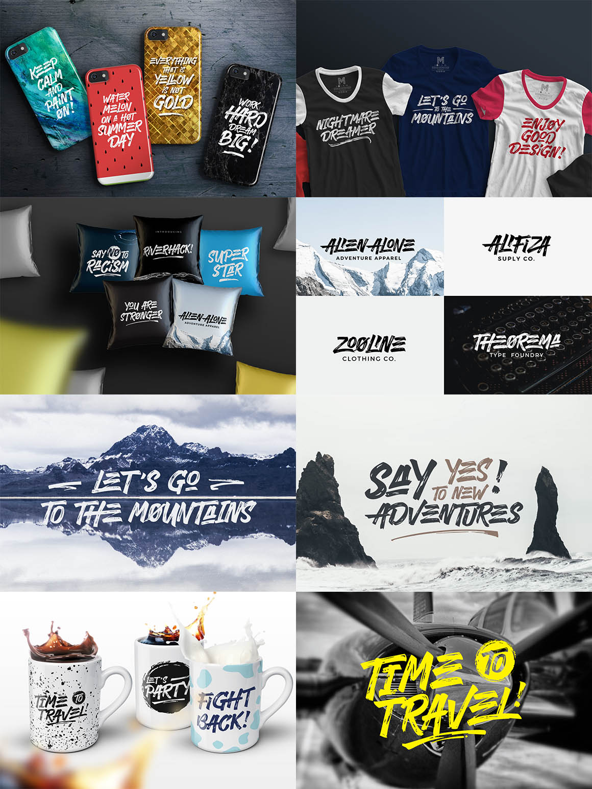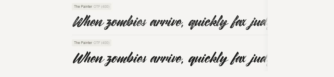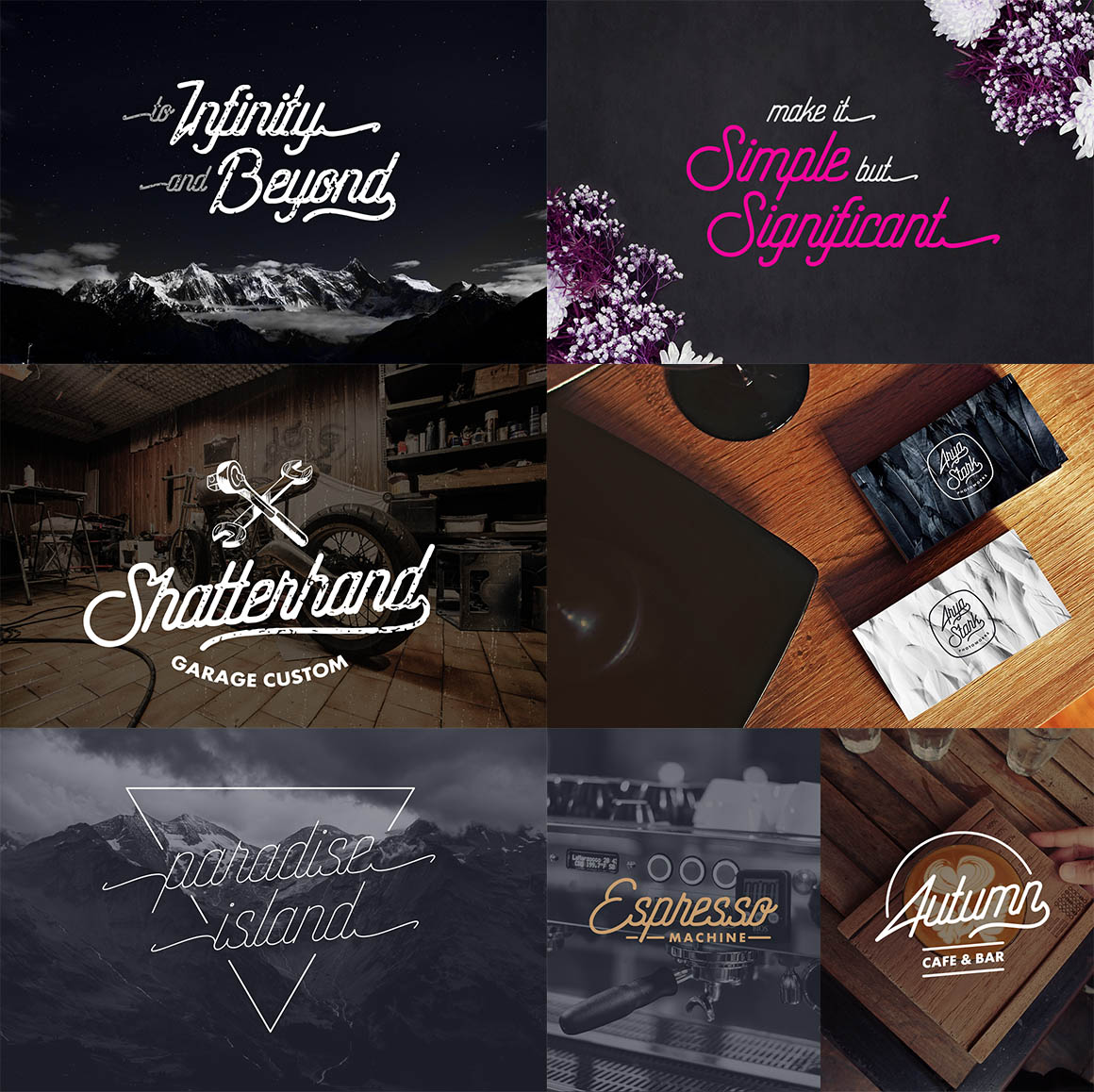 A hand lettering typeface inspired by traditional sign painting and brush lettering. The typeface family includes two styles (regular & rusty) with alternate characters who divided into open type features such contextual alternate, stylistic alternates, stylistic sets, ligature, fina, & swash. With 420 characters The painter will help you to create an attractive message for your design. The Painter best uses for Logo, Logo type, quotes, apparel design, invitations, flyer, poster, greeting cards, product packaging, headers, printed quotes, cover album, etc.