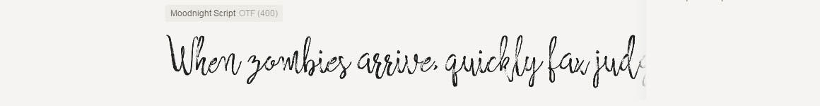 Moodnight Script is a new hand brush font , elegant, organic fun with dancing baseline. Different alternates and swashes to the beginning and ends of all lowercase. Features 302+ glyphs and 130+ alternate characters. Opentype features with ligatures, stylistic sets and International support for most Western Languages is included. This fonts can be used for various purposes.such as headings, signage, signature, t-shirt, letterhead, lable, wedding invitation, logos, posters, news, badges etc. Moodnight Script is coded with PUA Unicode, which allows full access to all the extra characters without having special designing software. Mac users can use Font Book , and Windows users can use Character Map to view and copy any of the extra characters to paste into your favourite text editor/app.