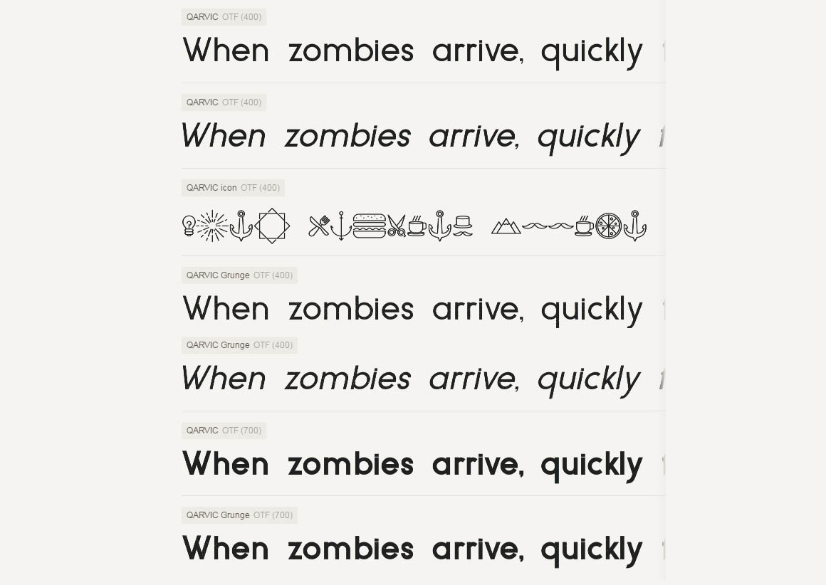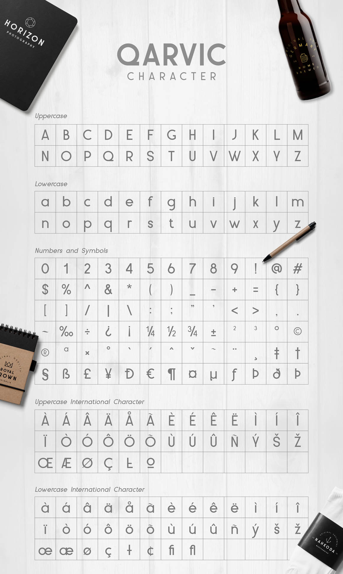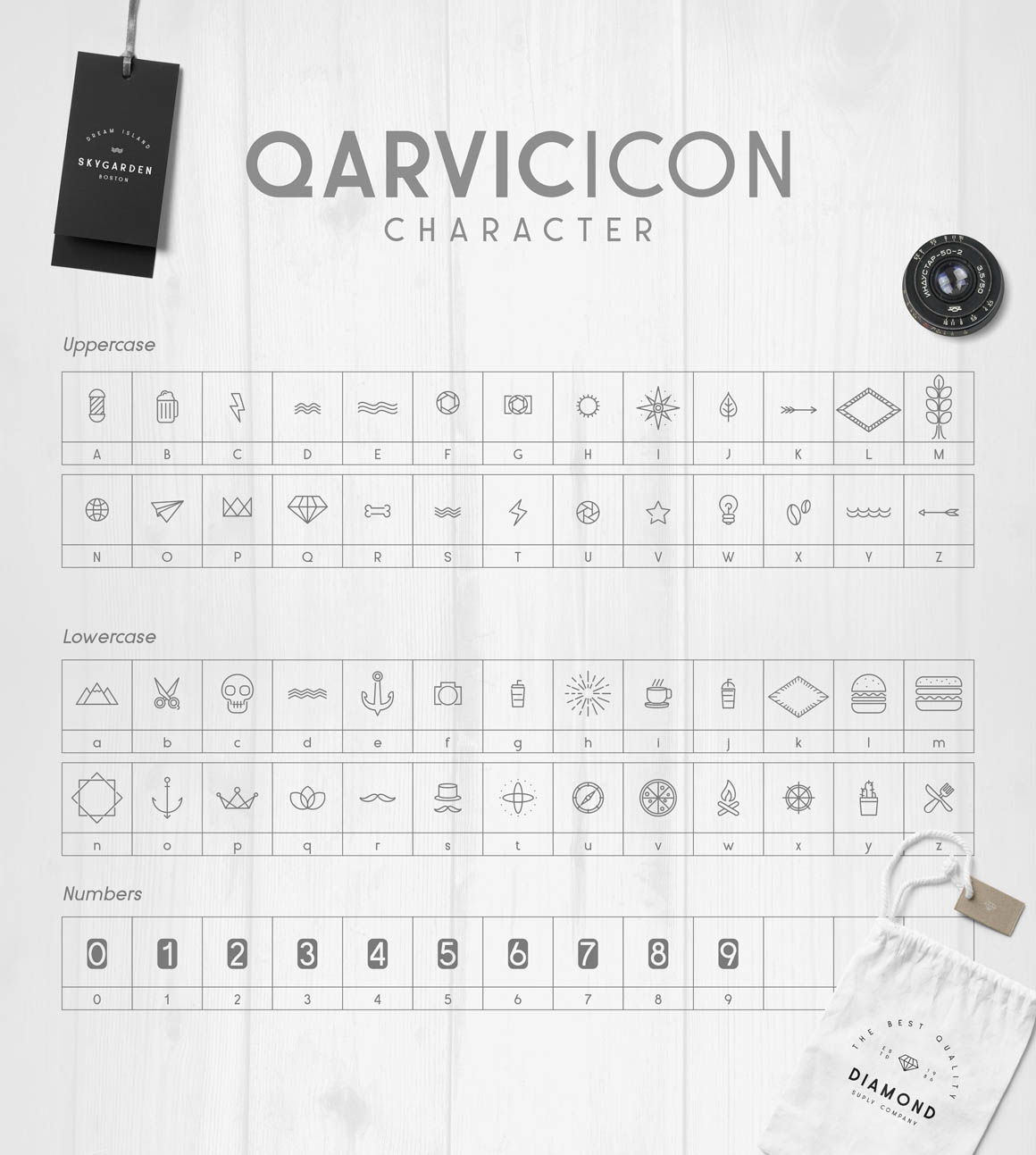 Introducing QARVIC TYPEFACE a simple and beautiful font made with persistence and passion. QARVIC typeface have a unique character when compared with the others sans serif font, it has two types of letters are plain type and type grunge and it also has an outline QARVIC icon characters. QARVIC typeface is suitable for simple logo design, website header, wedding design, badges, menu fonts for website. to design fashion, and others who have a minimalist and simple concept.