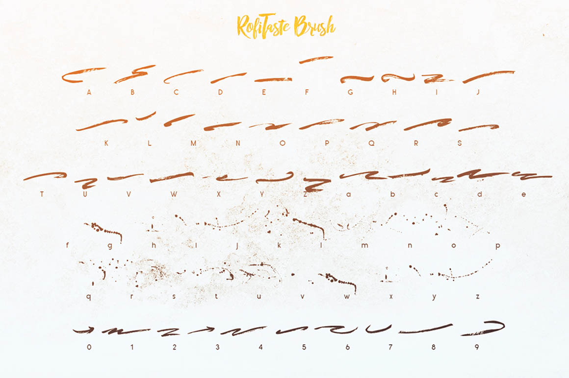 Introducing RofiTaste Hand brushed typeface , font is designed with a unique use of dry brush that creates the character of grunge brush. RofiTaste typeface excellent used for the manufacture quote text, logotype, header magazine, t-shirt design and concept handmade designs.