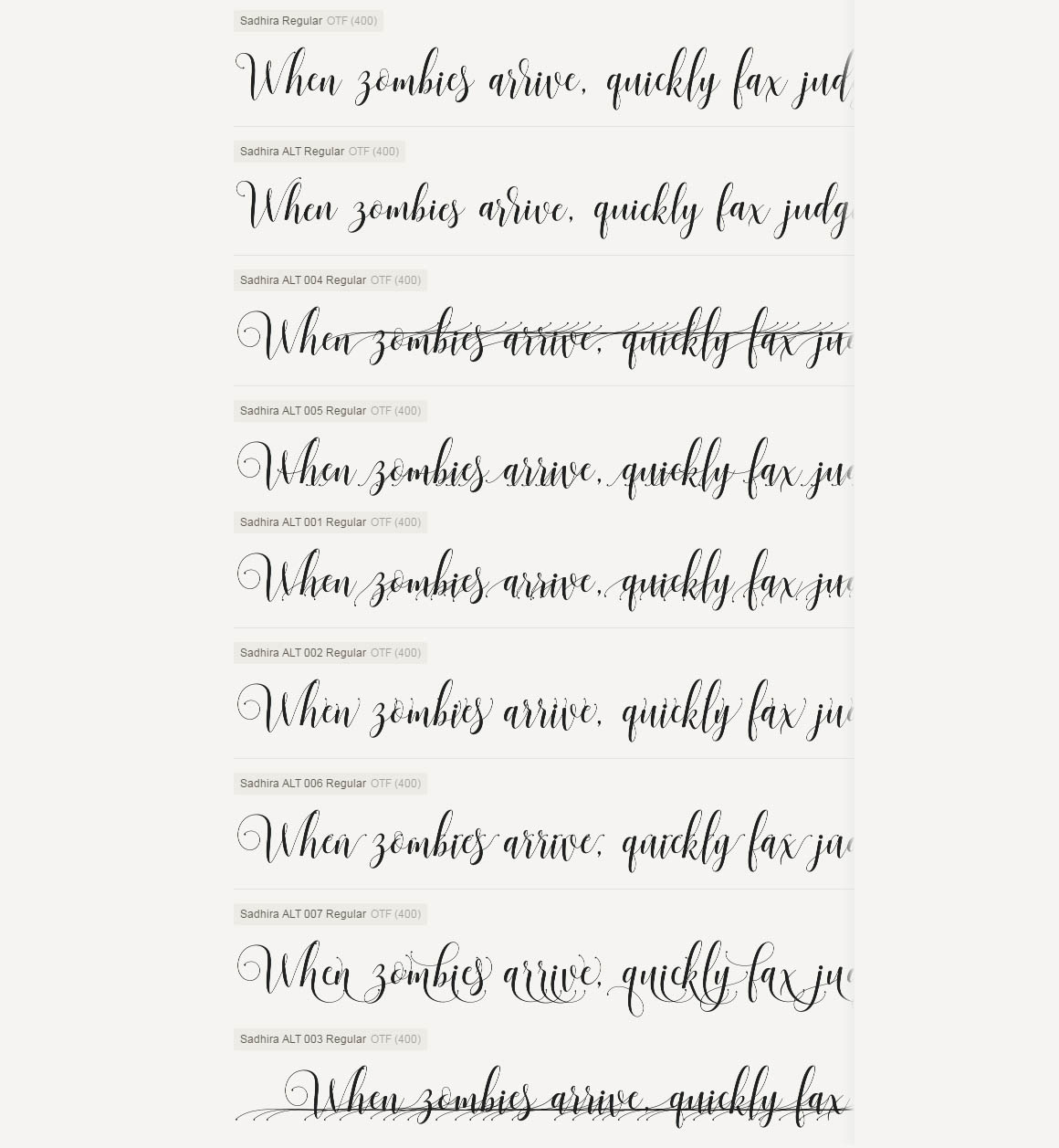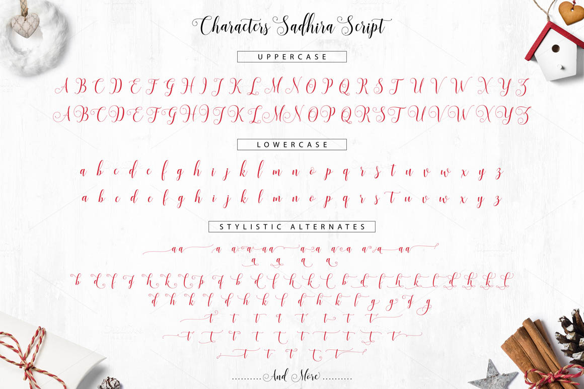 Sadhira Script is modern script font, every single letters have been carefully crafted to make your text looks beautiful. With modern script style this font will perfect for many different project, example: weddings, invitations, greeting cards, posters, name card, quotes, blog header, branding, logo, fashion, apparel, letter, stationery, etc. Sadhira Script including alternate glyph and beautiful swirl in a font including stylistic sets, Ligatures etc. The Open Type features can be accessed by using Open Type savvy programs such as Adobe Illustrator CS, Adobe Indesign & CorelDraw X6-X7 and Microsoft Word. And this Font has given PUA unicode (specially coded fonts). so that all the alternate characters can easily be accessed in full by a craftsman or designer.