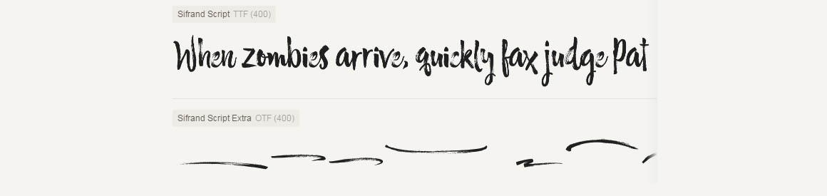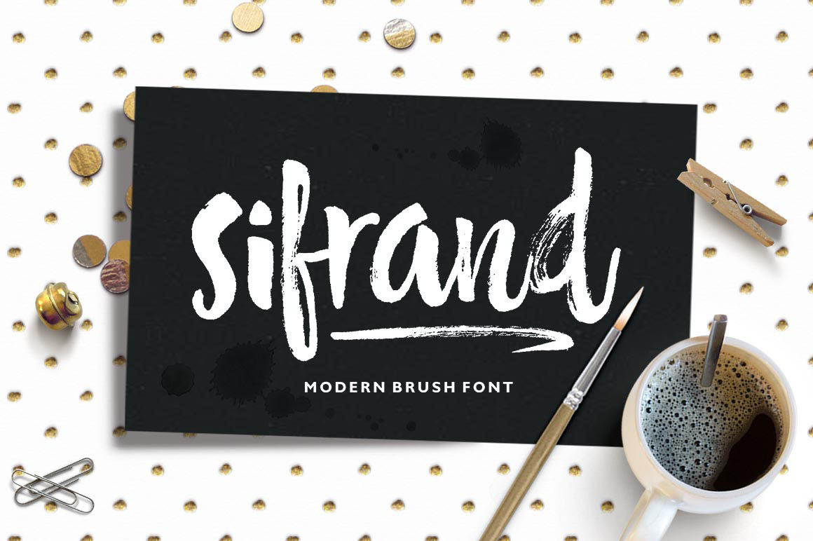 Sifrand Script is a modern brush font + Extras, organic, dynamic and energetic sytle.Can used for various purposes. such as the title, signature, logo, correspondence, wedding invitations, letterhead, signage, labels, newsletters, posters, badges, etc.