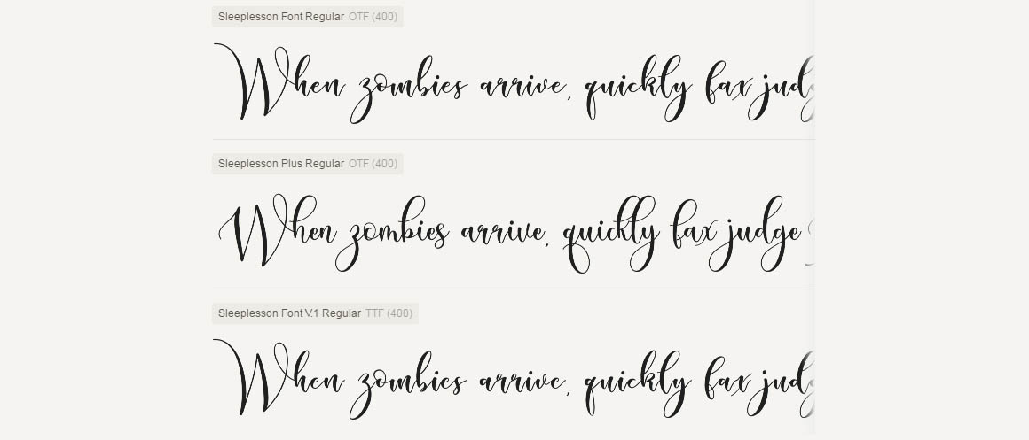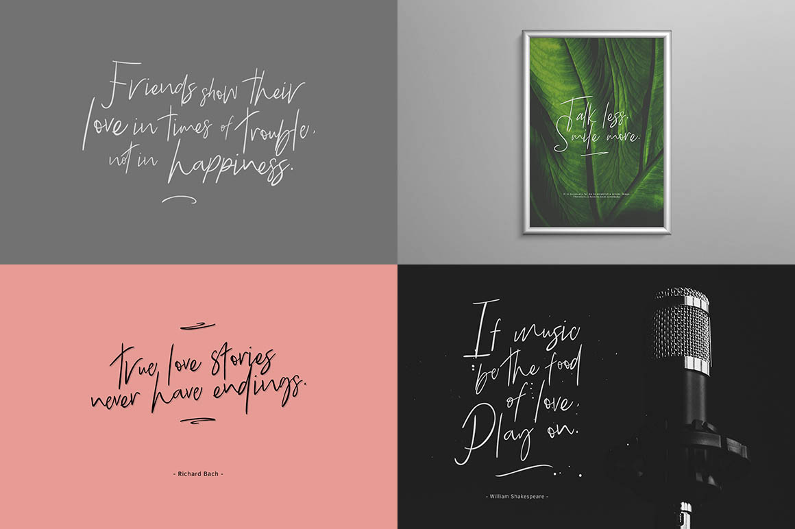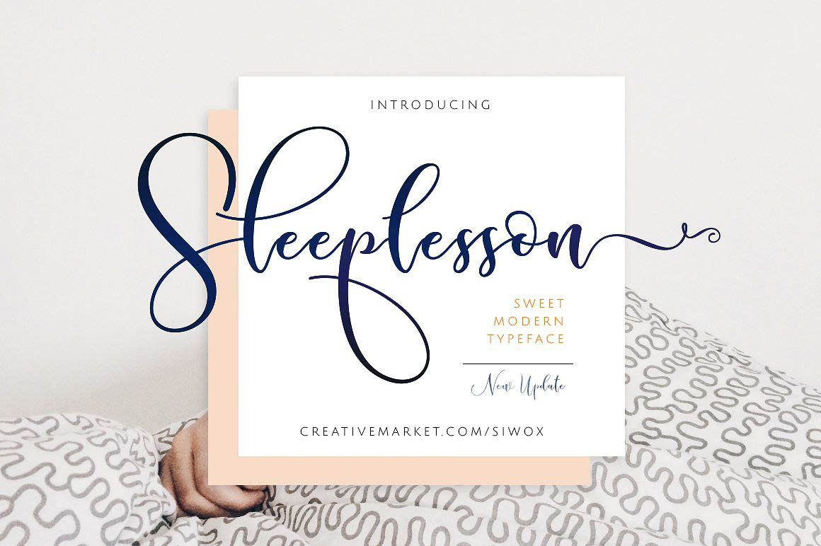 A script font with a smooth handwritten style. Comes with 468 glyphs. Sleplesson is perfect for branding projects, homeware designs, product packaging, use in name card, invitation cards, etc. Simply as a stylish text overlay to any background image or anything requiring a sprinkle of elegance.
