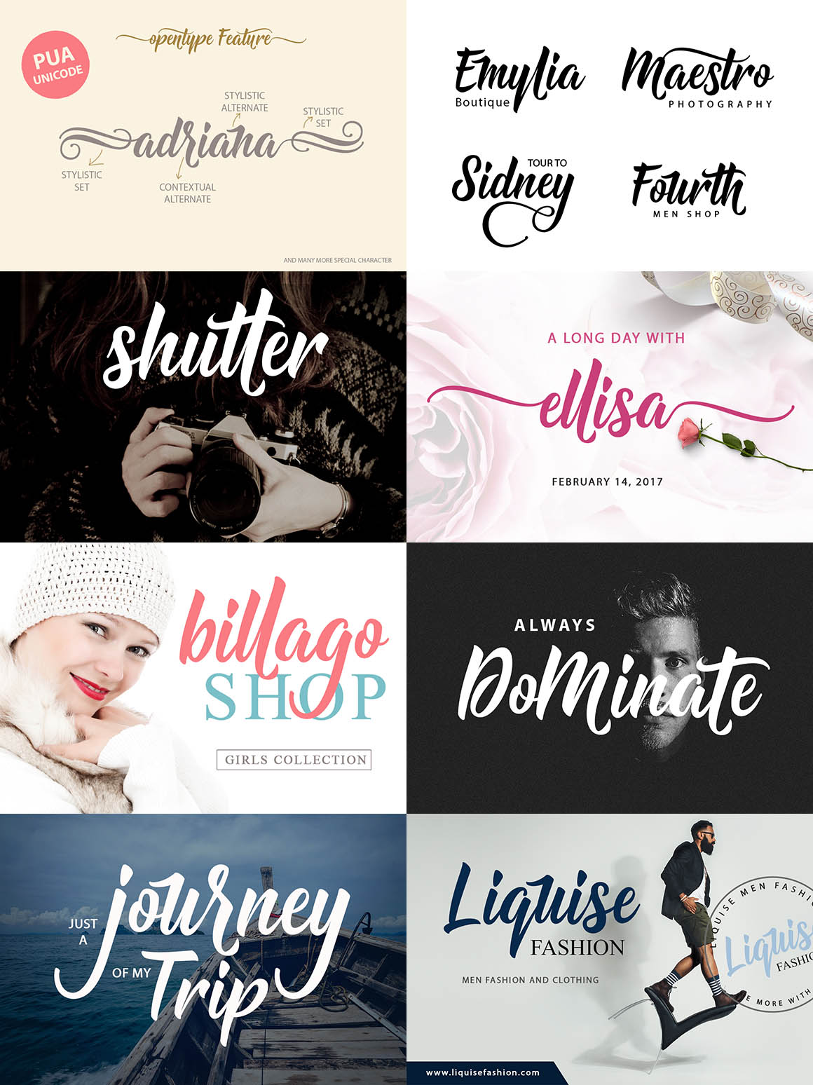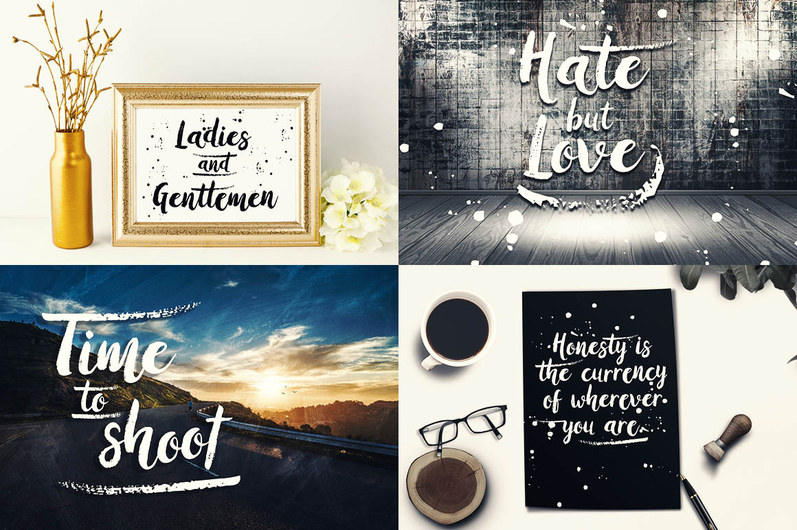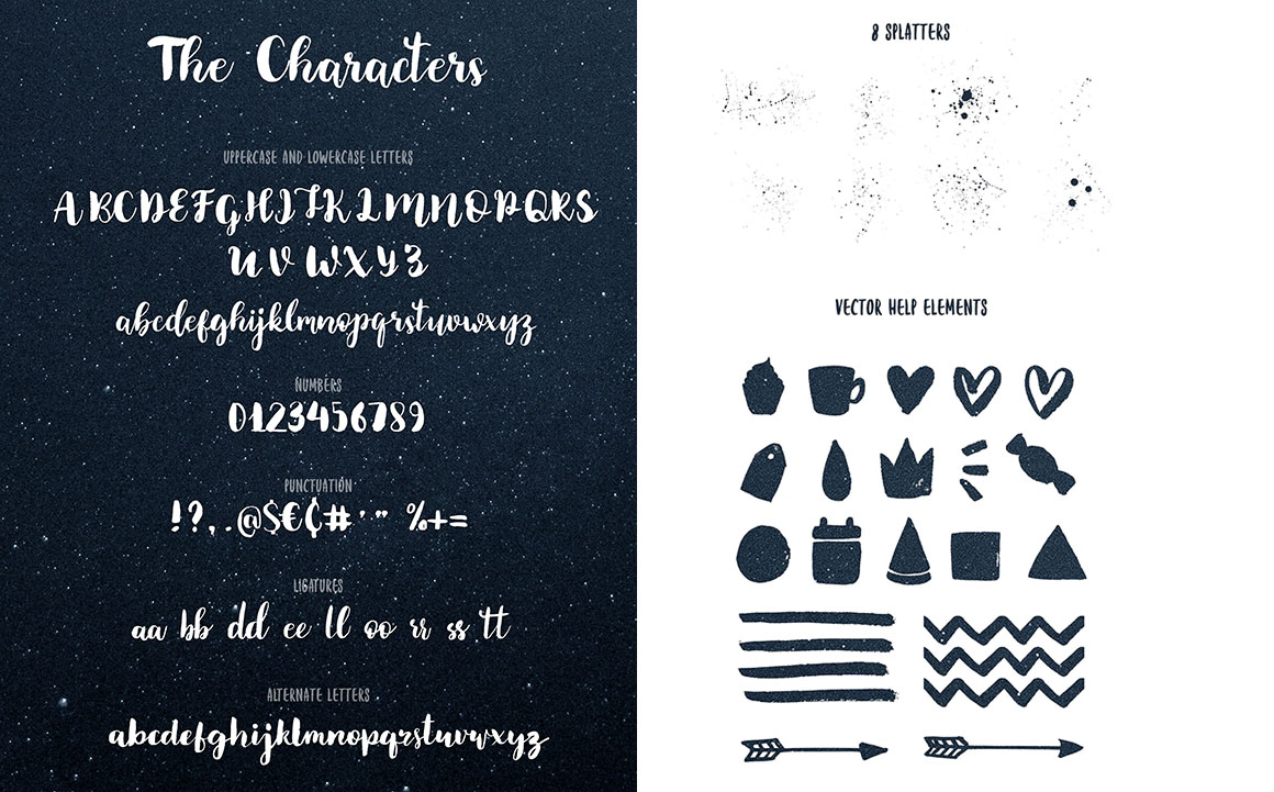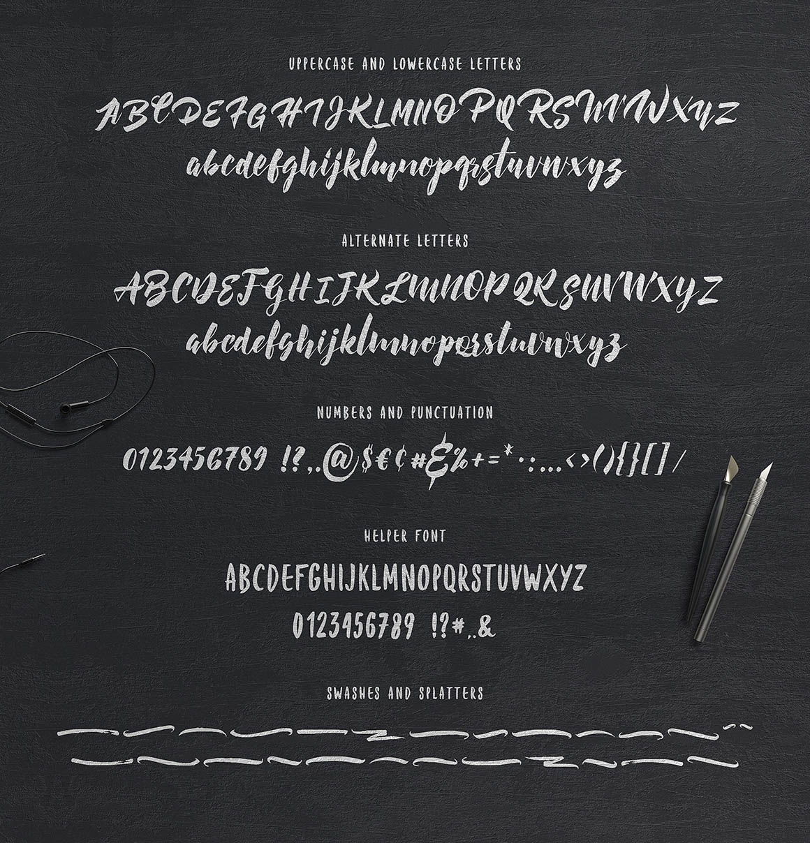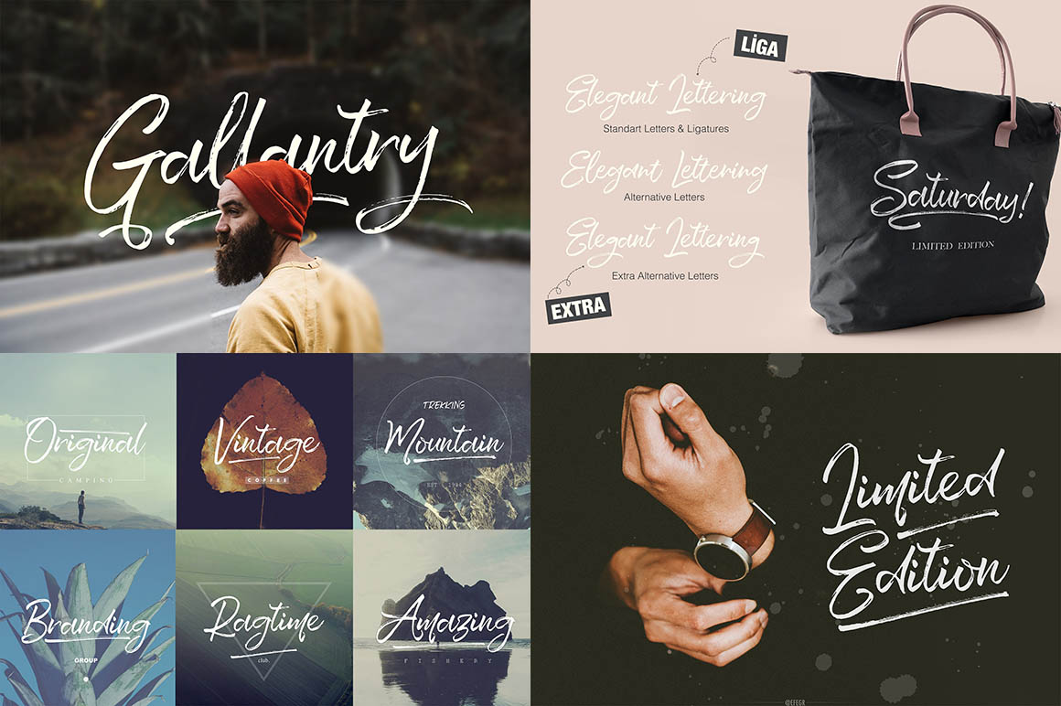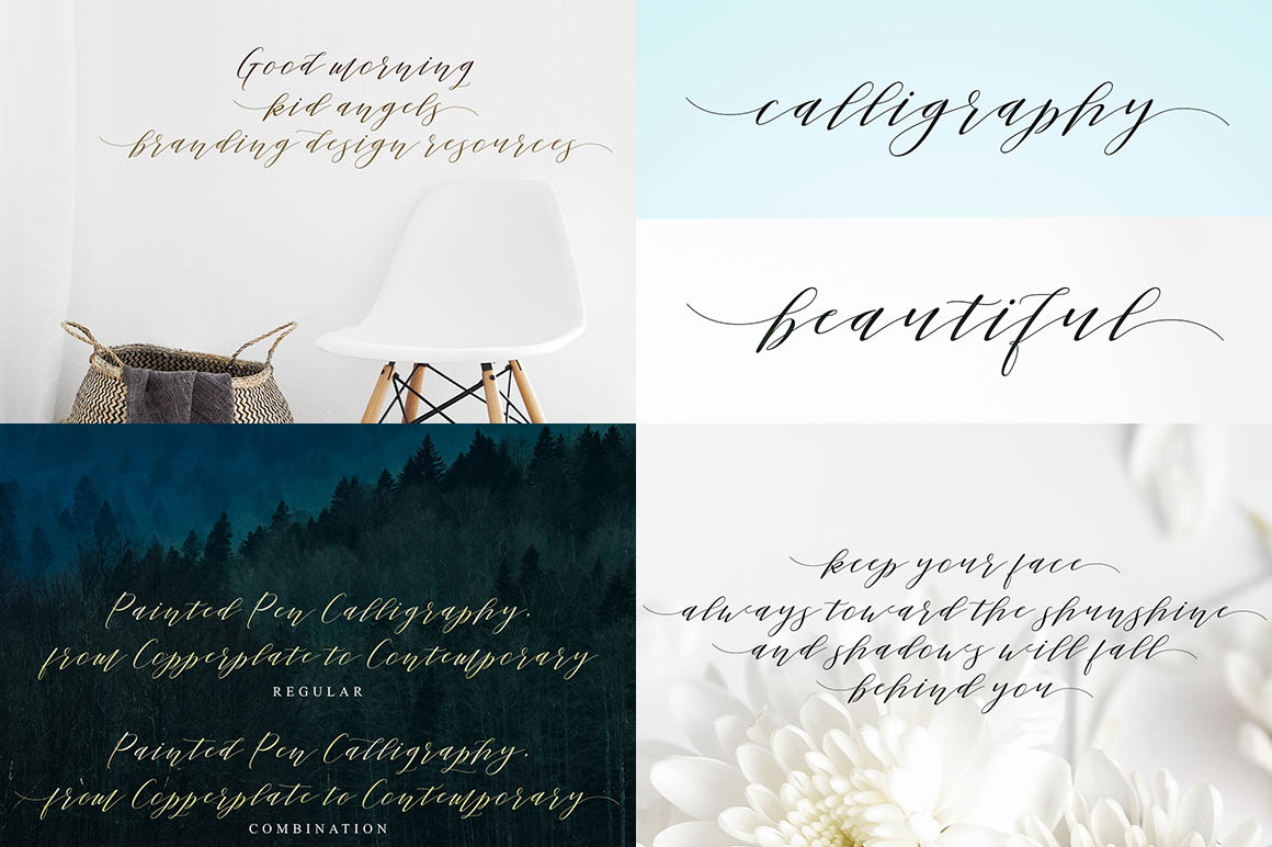 Kelium is a handlettering typeface with a brush style, it’s perfect for latterhead, apparel design, headline, logotype, poster, card, and etc. For folks who have opentype capable software : The alternates are accessible by turning on ‘Stylistic Alternates’ and ‘Ligatures’ buttons on in Photoshop’s Character panel, or via any software with a glyphs panel, e.g. Adobe Illustrator, Photoshop, Inkscape.