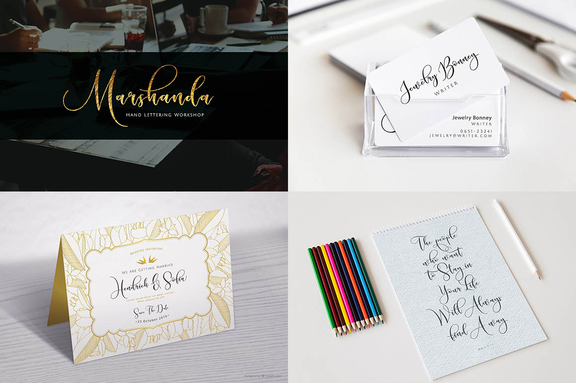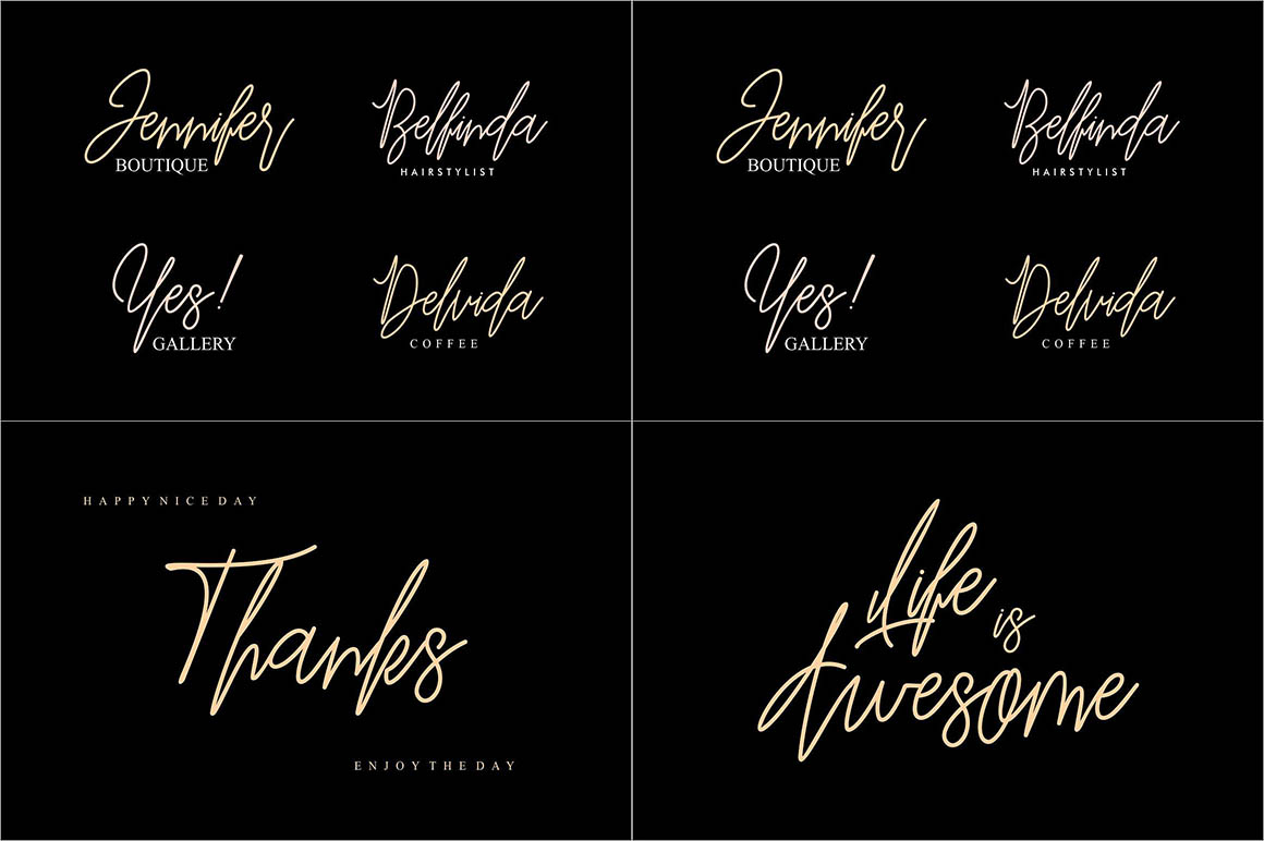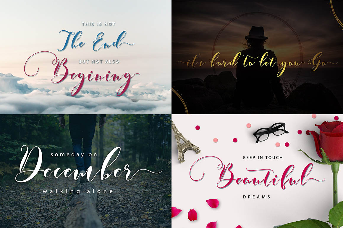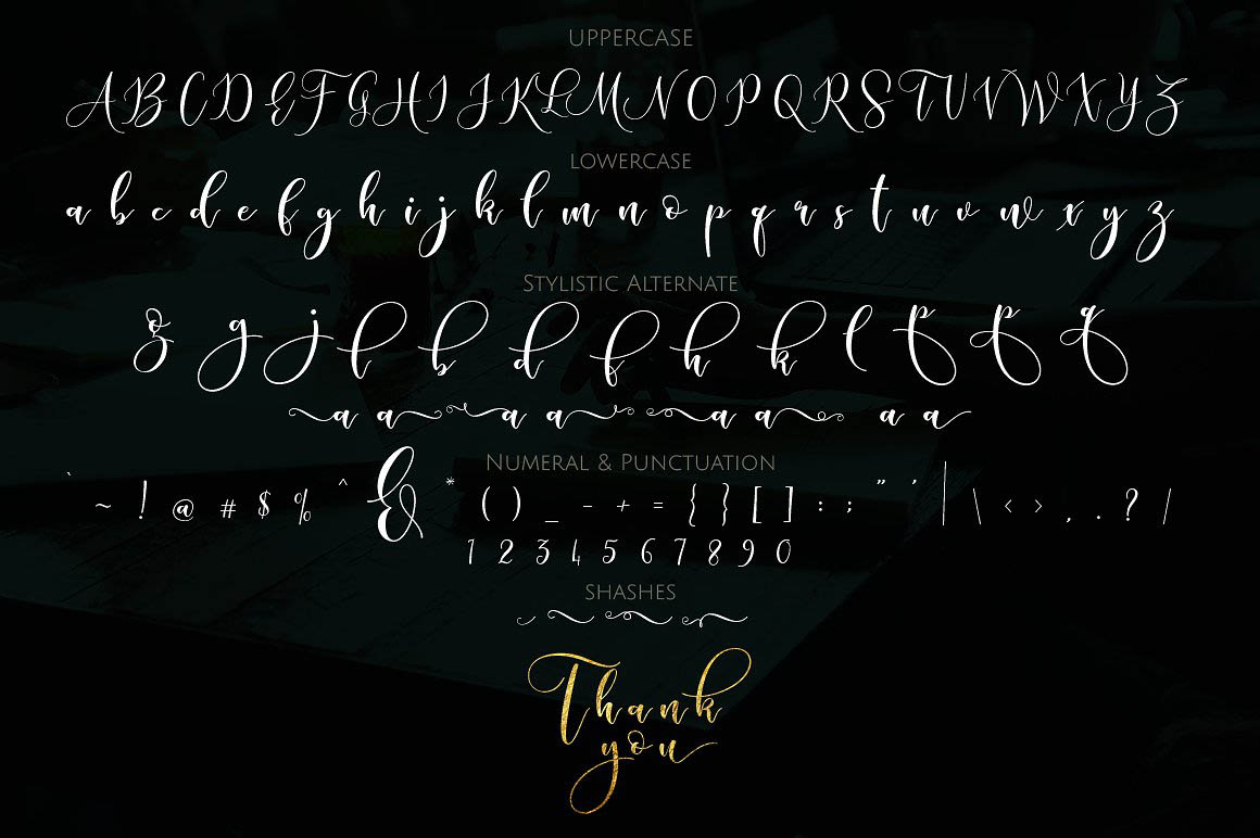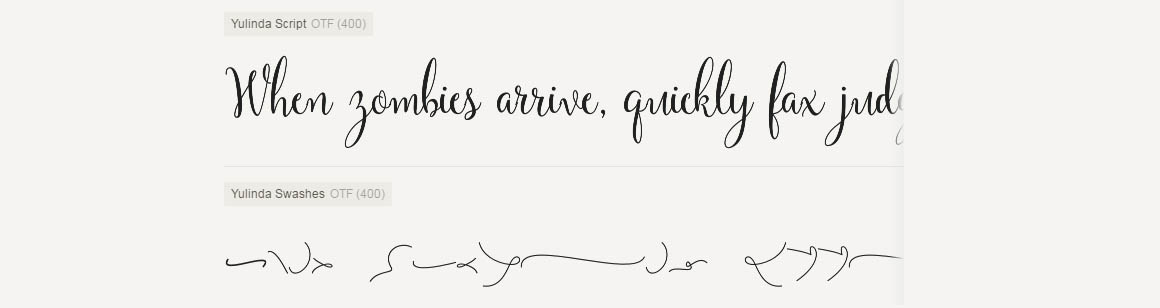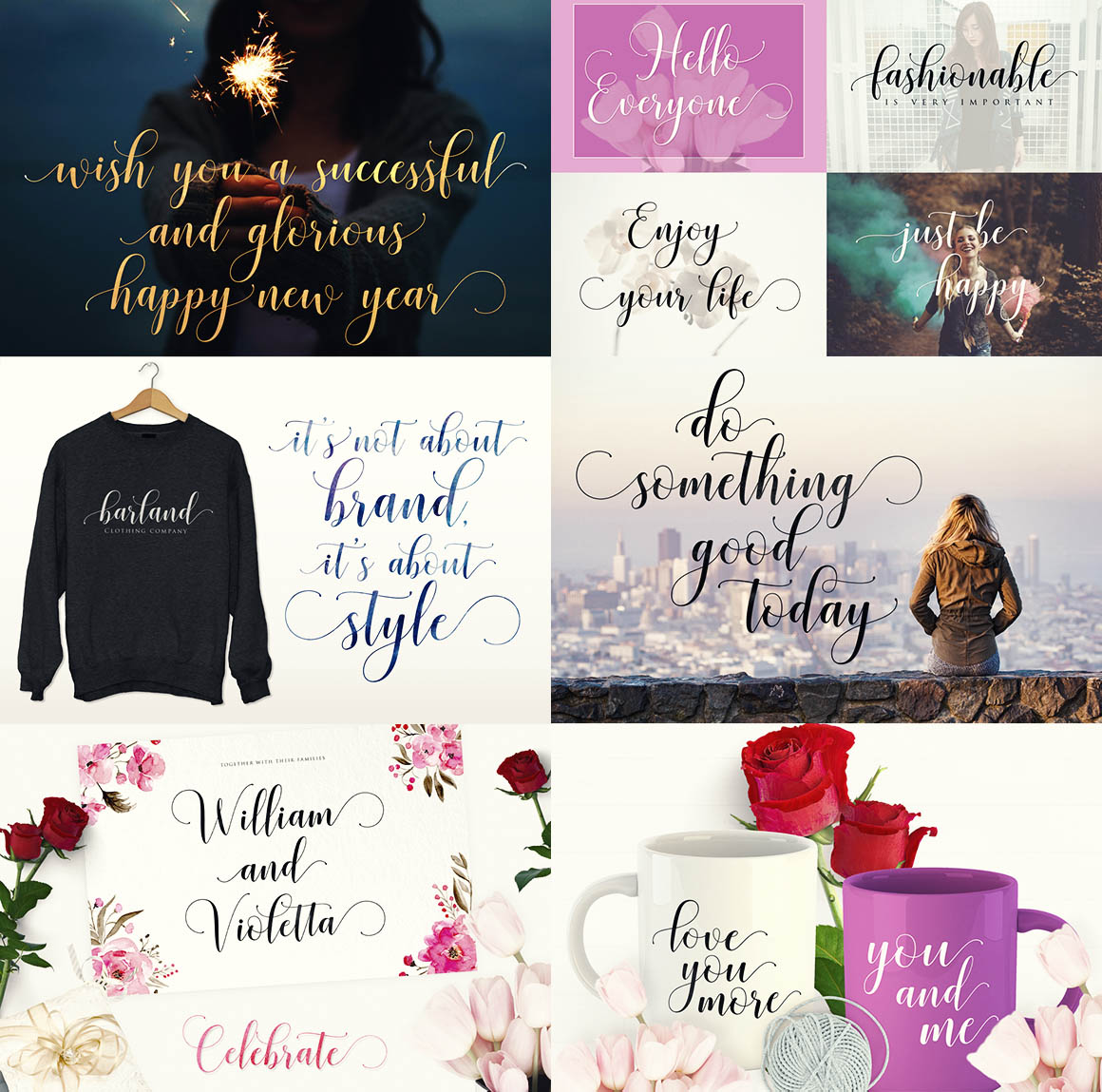 Yulinda Script a new fresh & modern script with a handmade calligraphy style, decorative characters and a dancing baseline! So beautiful on invitation like greeting cards, branding materials, business cards, quotes, posters, and more!! Yulinda Script come with 1314 glyphs. The alternative characters were divided into several Open Type features such as Swash, Stylistic Sets, Stylistic Alternates, Contextual Alternates, and Ligature. The Open Type features can be accessed by using Open Type savvy programs such as Adobe Illustrator, Adobe InDesign, Adobe Photoshop Corel Draw X version, And Microsoft Word. And this Font has given PUA unicode (specially coded fonts). so that all the alternate characters can easily be accessed in full by a craftsman or designer.