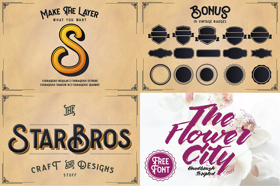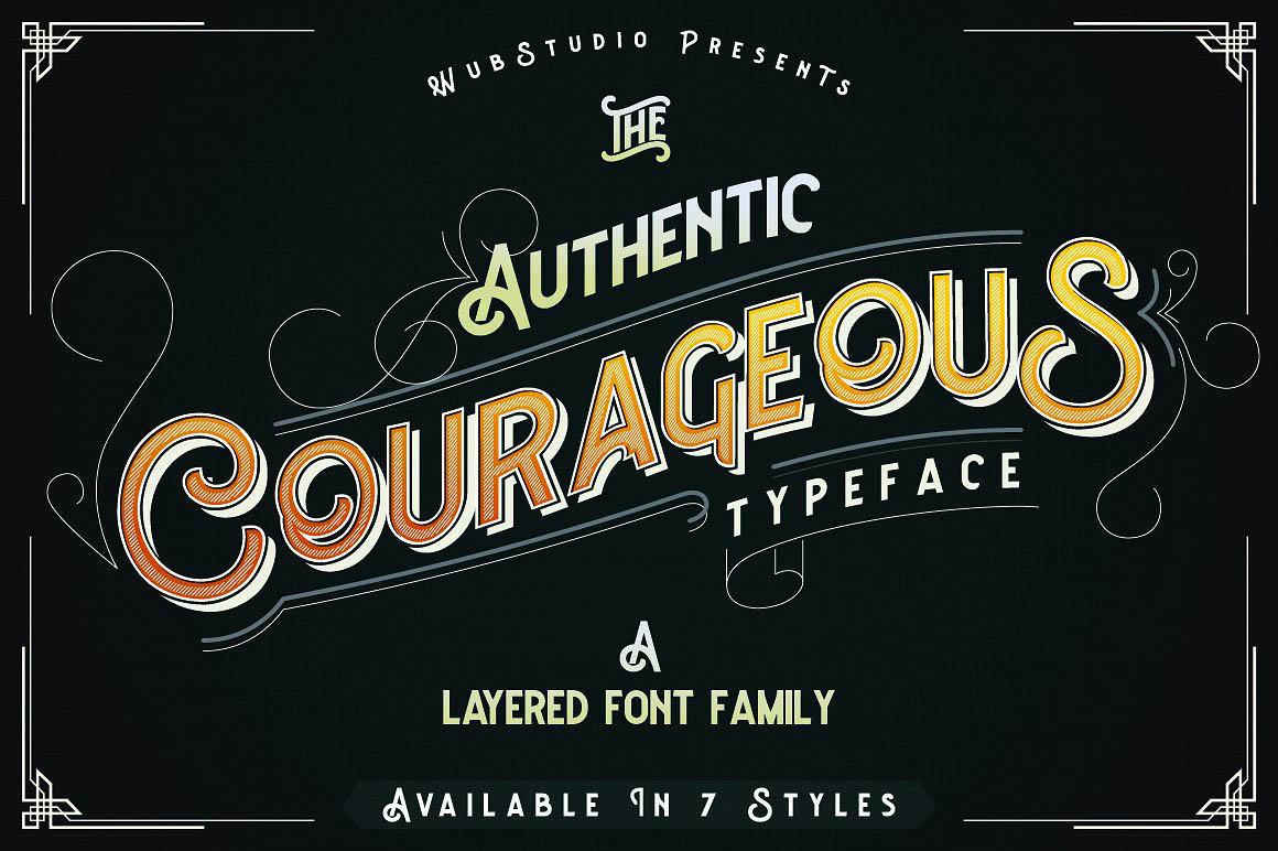 Courageous font typeface is inspired from the late 1800s typography. Had some family which is layered. These fonts you can use to complete the design of your concept of vintage, retro, and classic.