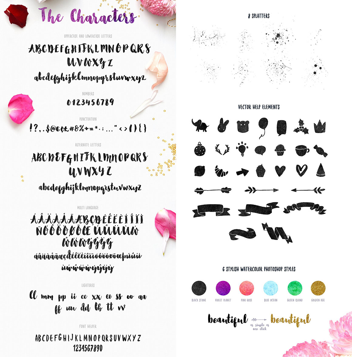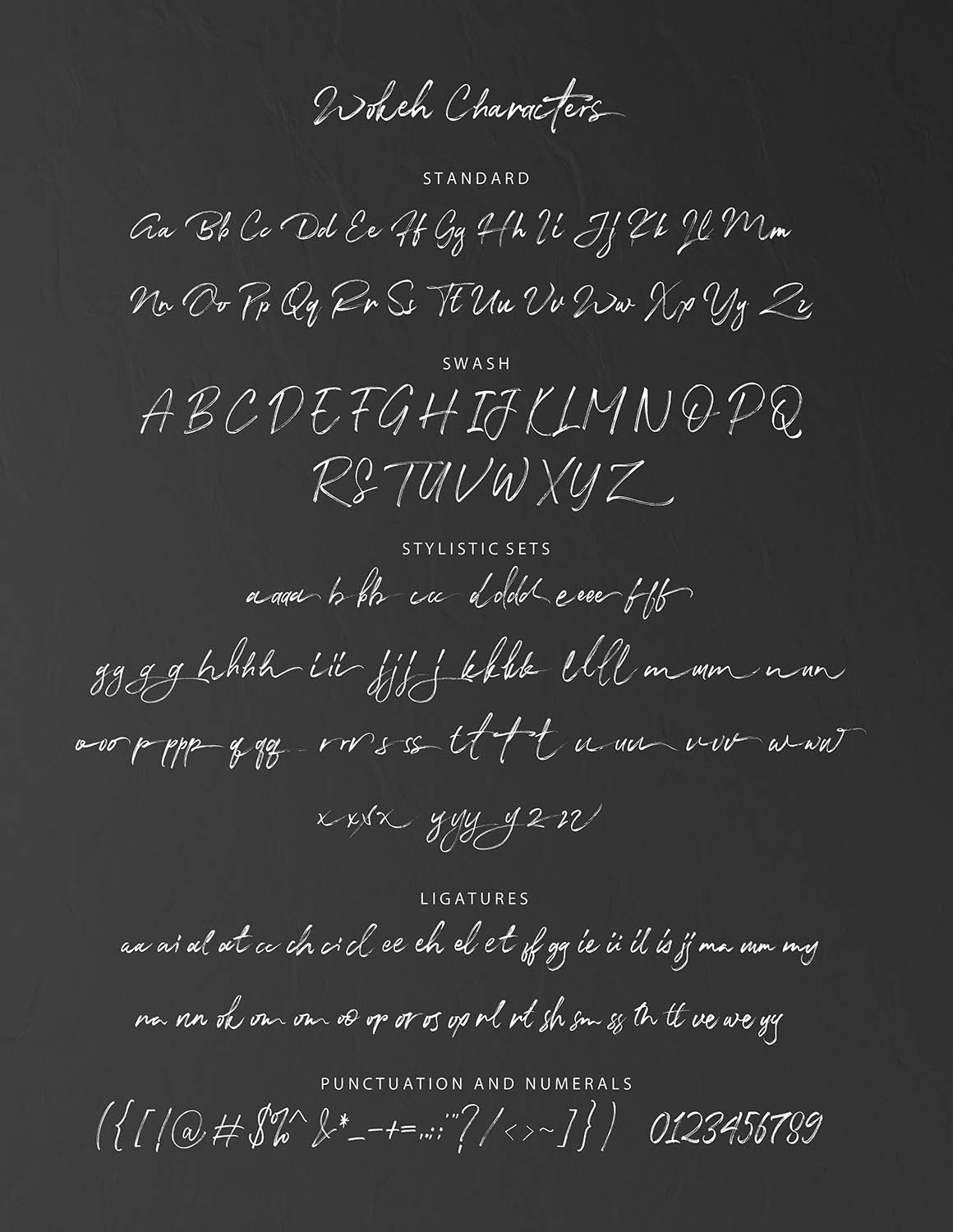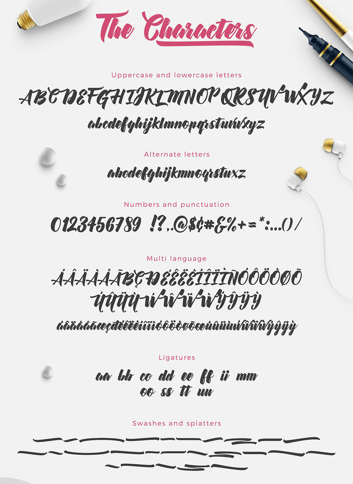 Mystique comes with a full set of upper and lower case characters – giving you the extra freedom to turn your text into authentic custom-made hand lettering. Mystique font Includes a large range of glyphs including numerals, punctuation & multilingual support.