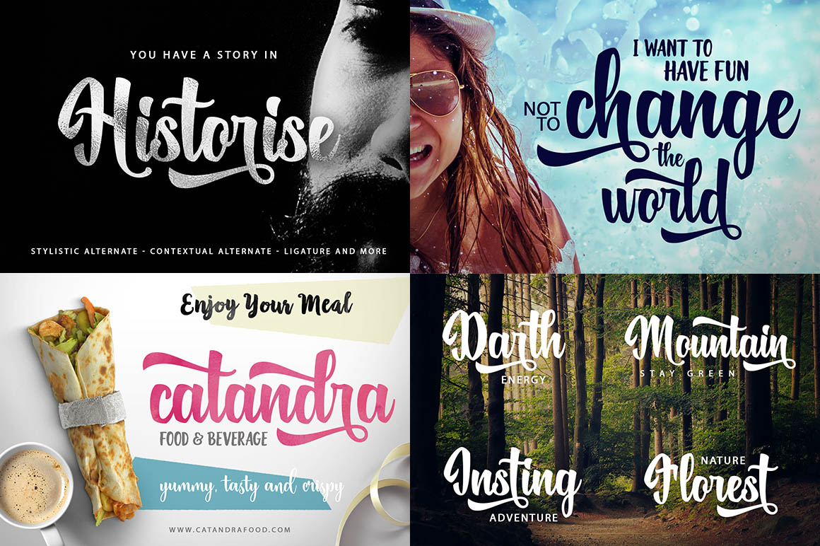 Say hello to “Historise” Made with an attractive and elegant style. A font is very describing a gallantry but still has a value of beauty. Historise can be used anywhere such as on greeting cards, branding materials, bussiness cards, quotes, posters, logos and more. The Open Type features can be accessed by using Open Type savvy programs such as Adobe Illustrator, Adobe InDesign, Adobe Photoshop Corel Draw X version, And Microsoft Word. And this Font has given PUA unicode (specially coded fonts). so that all the alternate characters can easily be accessed in full by a craftsman or designer.