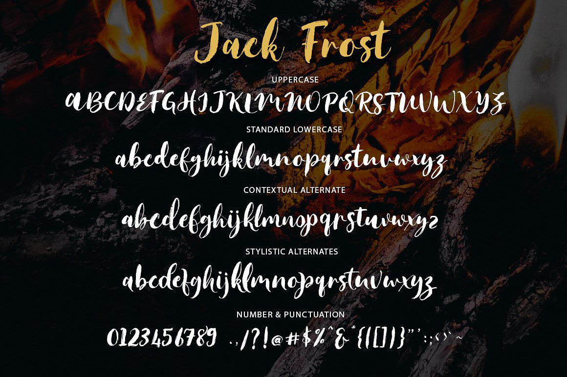 JACK FROST is a handmade style font with stunning characters. Made with a brush and high quality water-based ink. Ideal for name tag, handwritten quotes, product packaging, merchandise, social media, greeting cards, etc. It contains a full set of lower & uppercase letters, a large range of punctuation, numerals. Full accessible in the Adobe Illustrator Glyphs panel, or under Stylistic Alternates in the Adobe Photoshop OpenType menu. Corel, Ms. Word, Ms. Powerpoint, etc. No special software is required to access any of the standard letters.