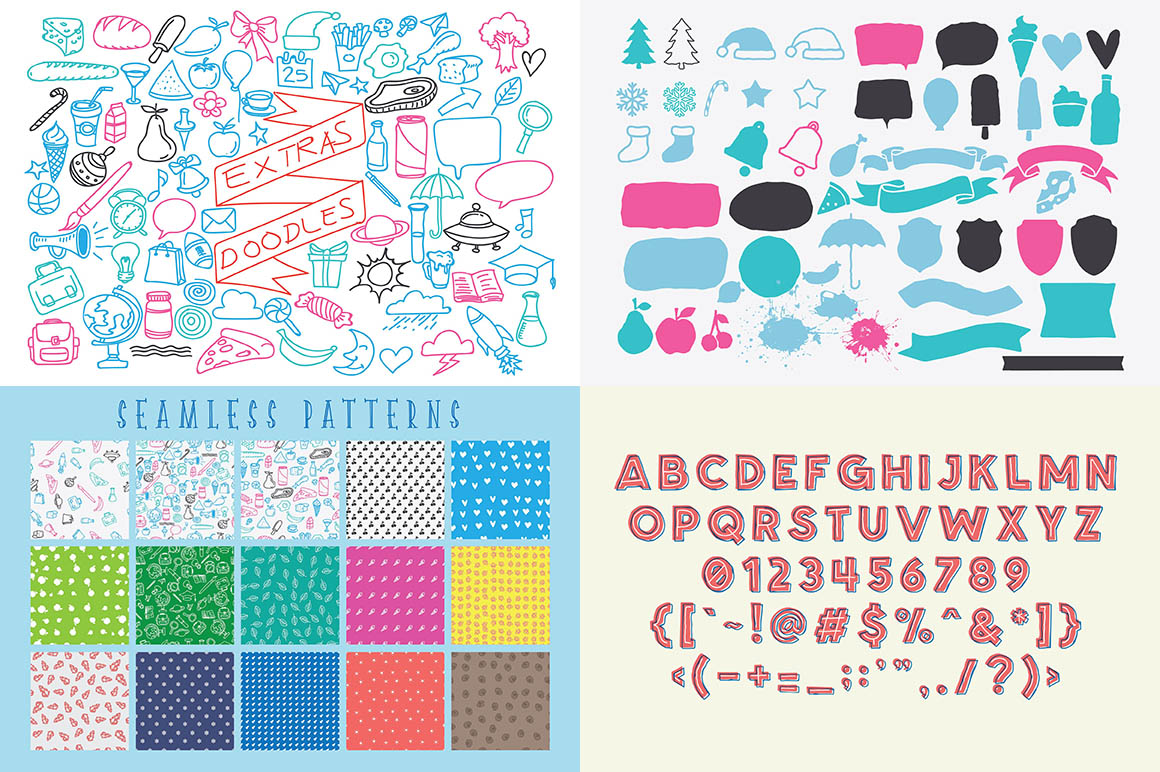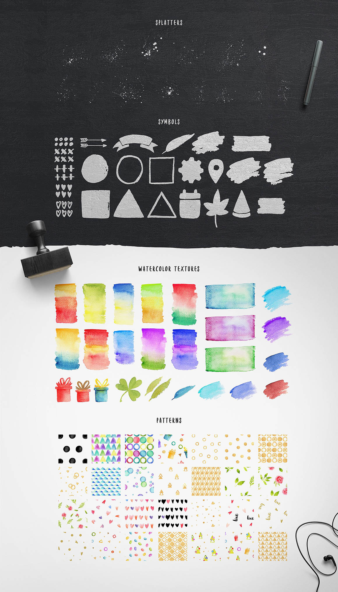 - extended license (like all of our deals): use for personal and commercial projects + you can also use them in designs/products that you sell. You can use all these items as a part of your non-digital or digital designs ( posters, t-shirt designs, stickers, web templates…). You cannot resell these files directly, or within items/goods where they can be extracted in their original form (like vector shapes, elements, fonts… – they need to be flatten into background or object in your digital item)