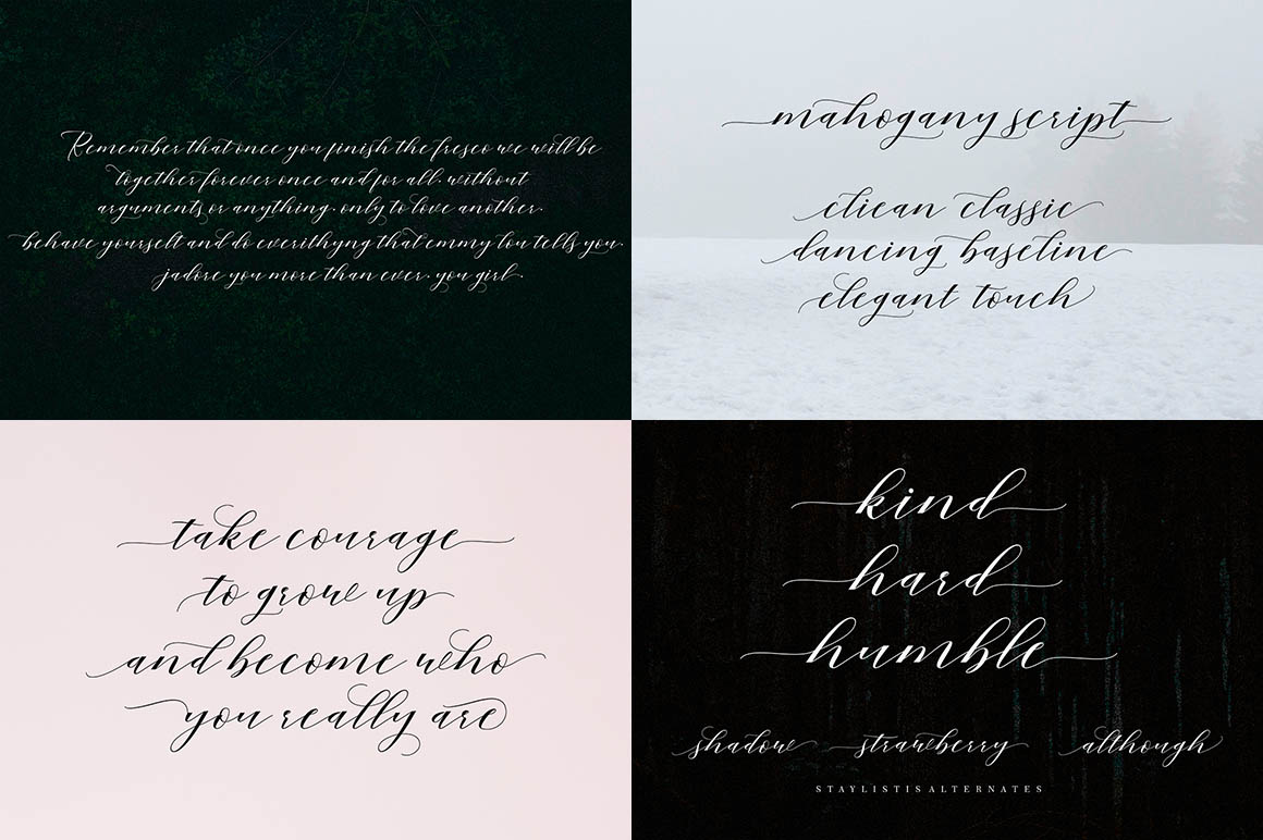 Mahogany Script is a lovely calligraphic manuscript modern, I hope you are interested in this font, dynamic and pretty with swashes. Can be used for many purposes. such as title, signature, logo, wedding invitations, letterhead, signage, labels, newsletters, posters, badges, etc. Mahogany Script features Open type, including the initial and terminal letters, ligatures and International support for most Western languages included.