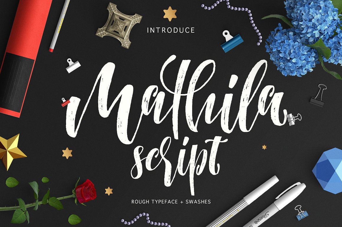 Mathila script is a new fresh & sweet hand made script typeface for typography, lettering, logotype and more, +300 glyphs have been added and Opentype Features included with rough characters + swashes it’s make perfect to create Elegant Design, Modern, and more.