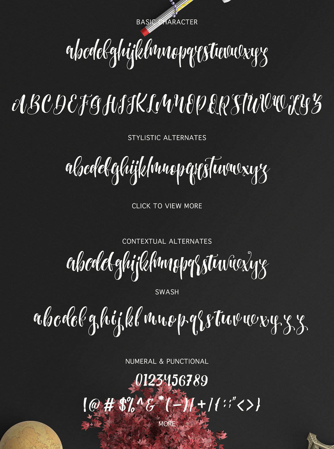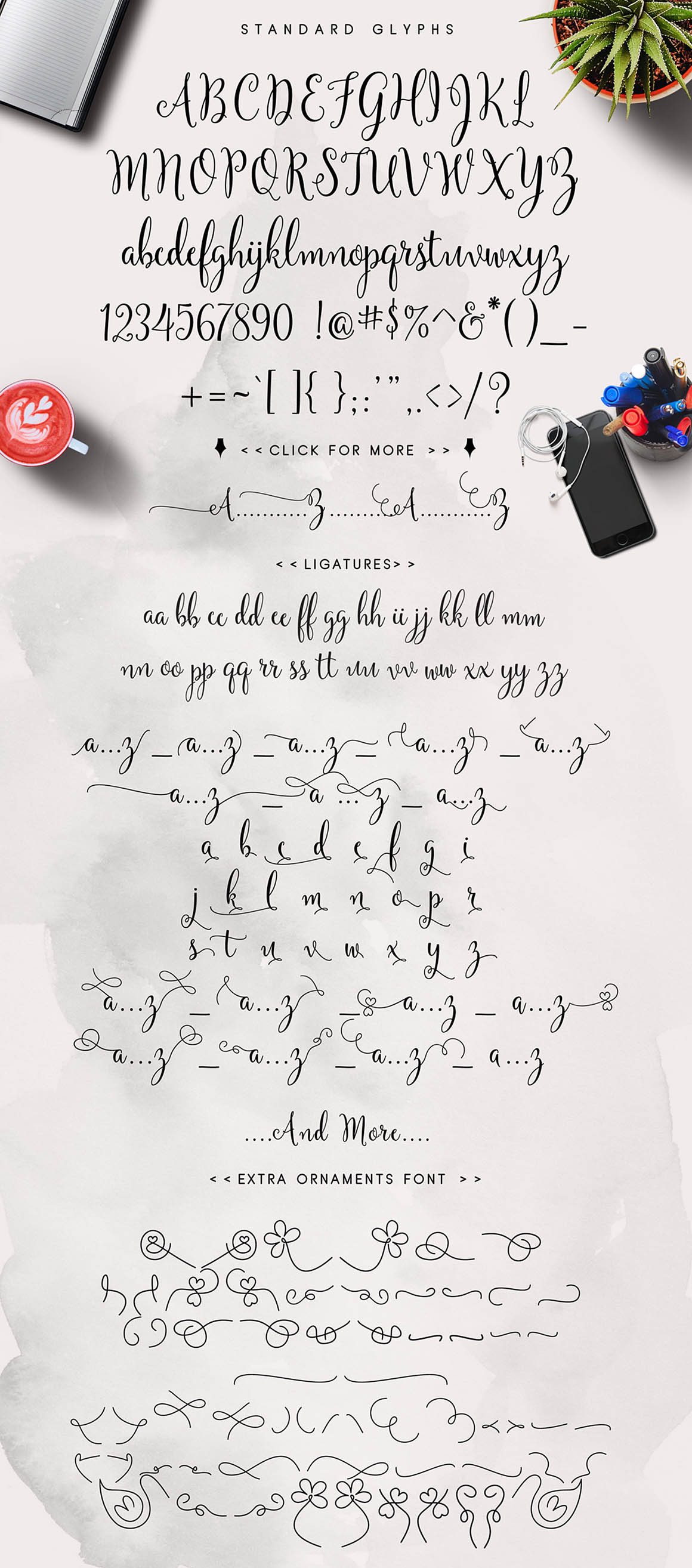 This is ARDILLA, a new fresh & modern script with calligraphy style. a charming typeface and So beautiful on invitation like greeting cards, branding materials, business cards, quotes, posters, and more. ARDILLA also has a swash letters from a – z that would make it a more attractive font. The Open Type features can be accessed by using Open Type savvy programs such as Adobe Illustrator, Adobe InDesign, Adobe Photoshop Corel Draw X version, And Microsoft Word. And this Font has given PUA unicode (specially coded fonts). so that all the alternate characters can easily be accessed in full by a craftsman or designer.