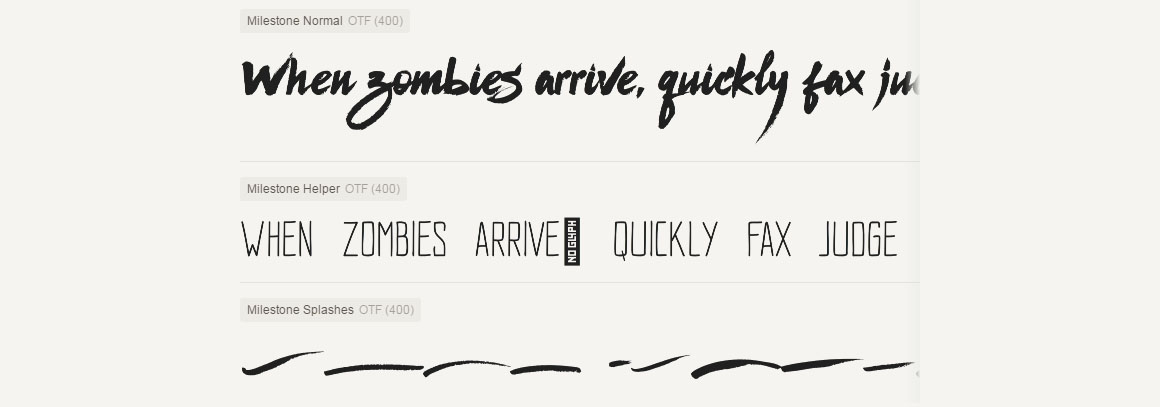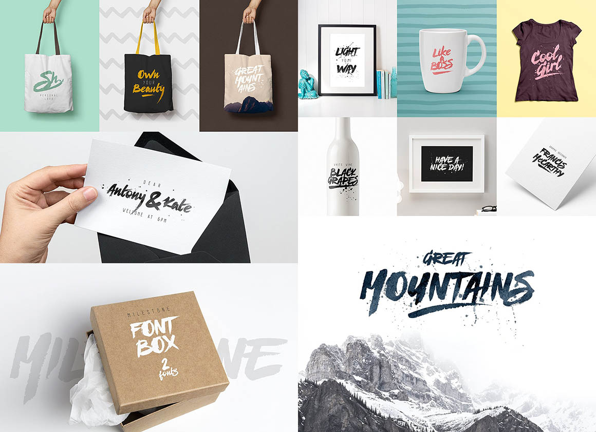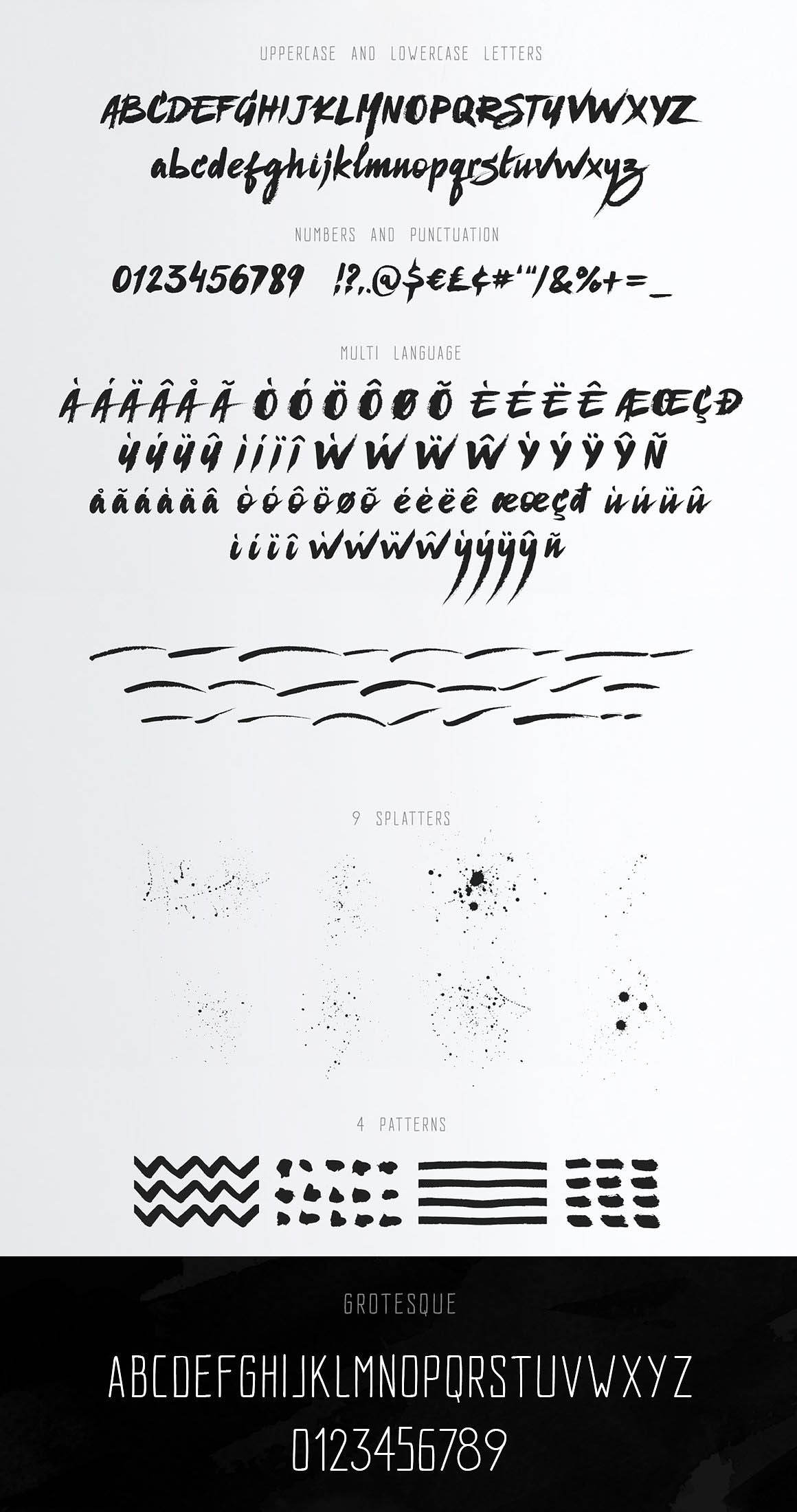 Milestone comes with a full set of upper and lower case characters – giving you the extra freedom to turn your text into authentic custom-made hand lettering. Milestone font Includes a large range of glyphs including numerals, punctuation & multilingual support. Also included is a bonus extras font, which consists of 26 swashes designed to perfectly compliment your primary text. I’ve also added a Milestone Grotesque additional font which is the perfect companion when used as a supporting text for Milestone font.