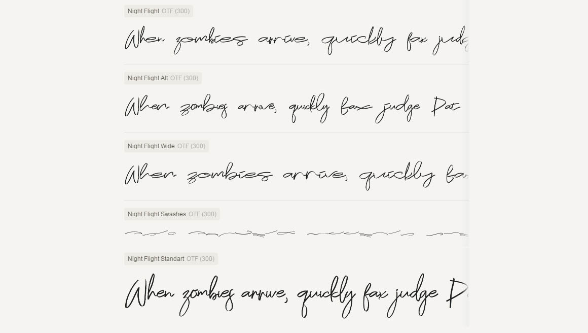 The modern, elegant ‘Night flight’ font family is a marker font that offers you numerous combinations to make a design. This wonderful marker font family has a feature that is not available on the market! This is so new! With this feature your words will have a new look. When making typographical arrangements, you can write 5 letters and 9 letter words in the same size. 2. As on the presentation page. This font will help you in many of your designs.
