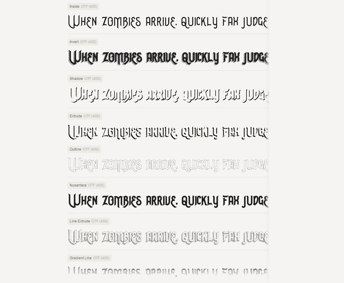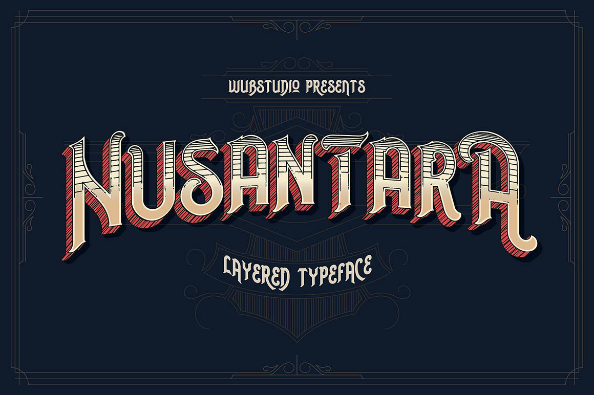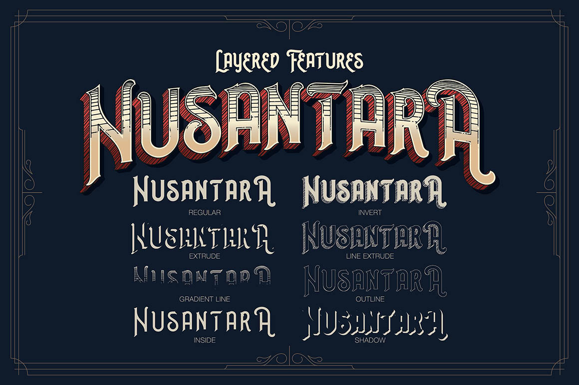 Nusantara Typeface is a family that is inspired from a vintage sign board. Archipelago consists of eight securities or style. All can be combined at the same time depending on your needs when designing.
