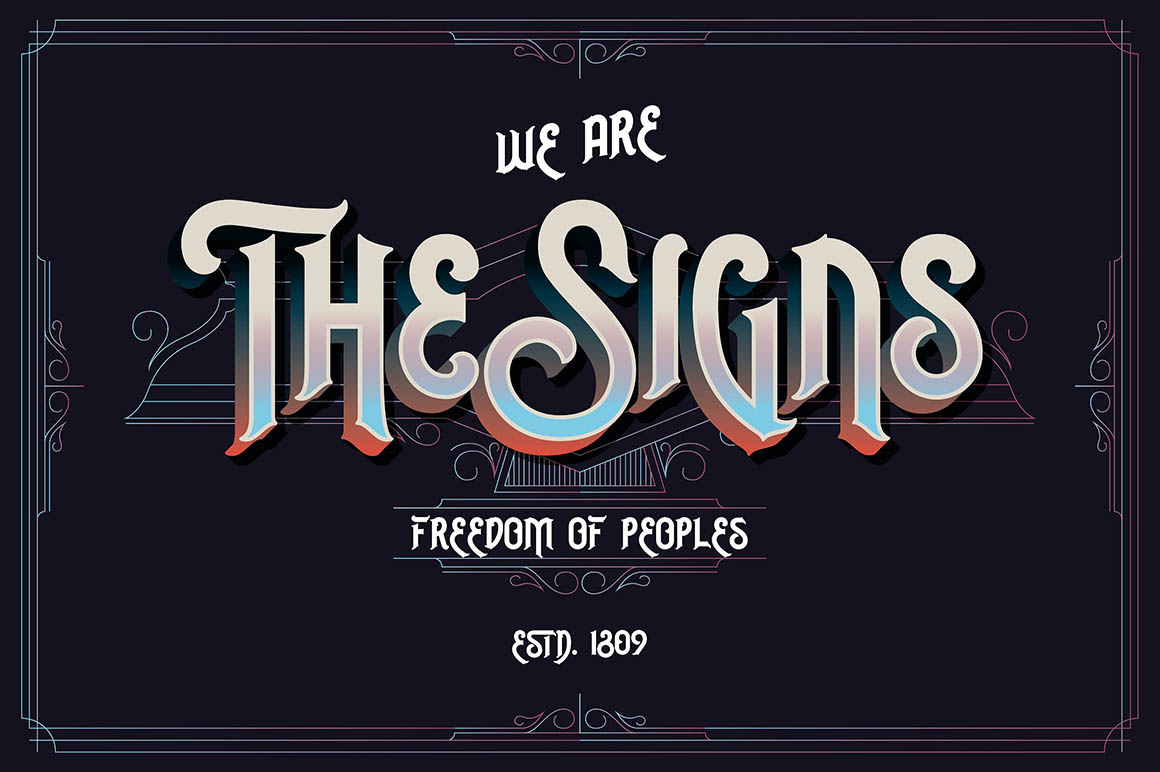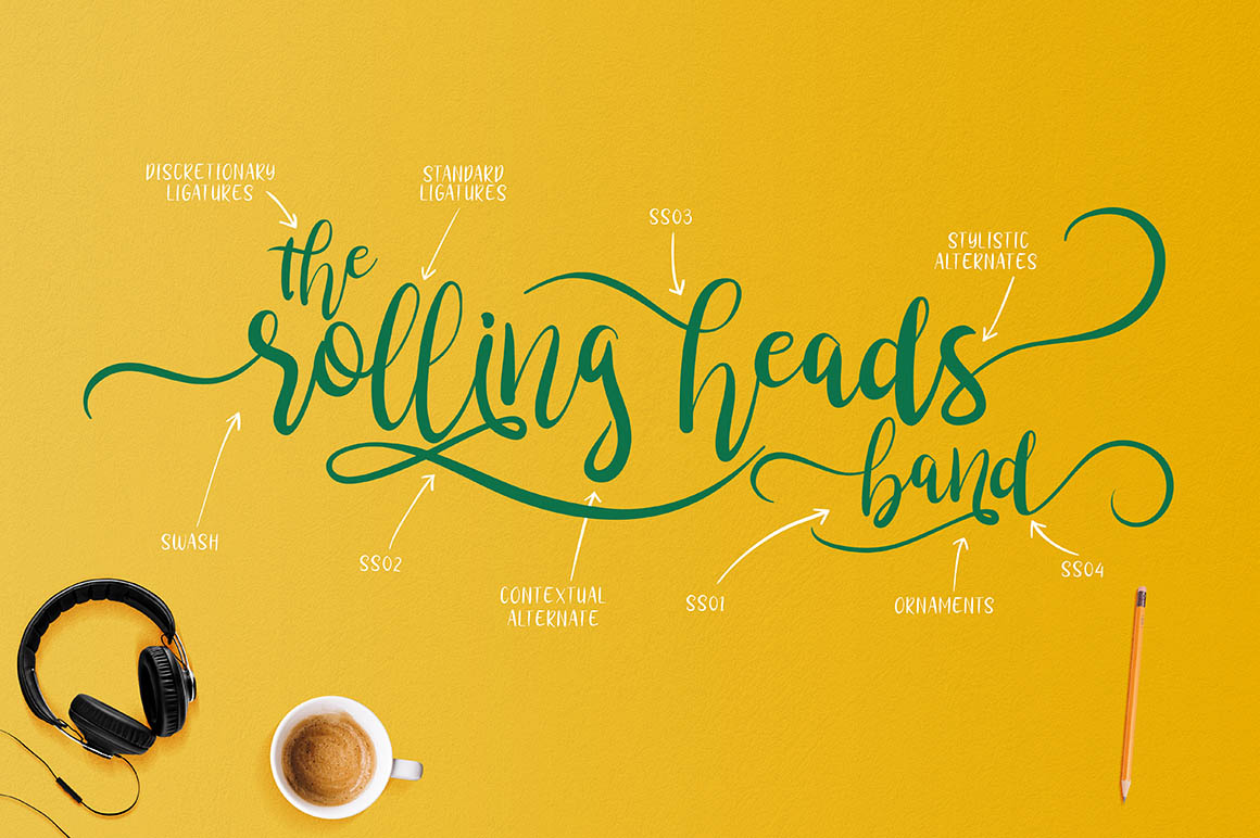 Wokeh are handmade with amazing character. Ideal for a logo, a name tag, handwritten quotations, product packaging, goods, social media and greeting cards. It contains a complete set of lower and upper case letters, assorted punctuation, numbers, swash and multilingual support. The font also contains several ligatures and contextual alternates for lower case characters, accessible in the Adobe Illustrator Glyphs panel, or under Stylistic Alternates in the Adobe Photoshop OpenType menu. But If you don’t have any opentype specific software, you can still use Siegfried as is with its standard lowercase and uppercase letters.